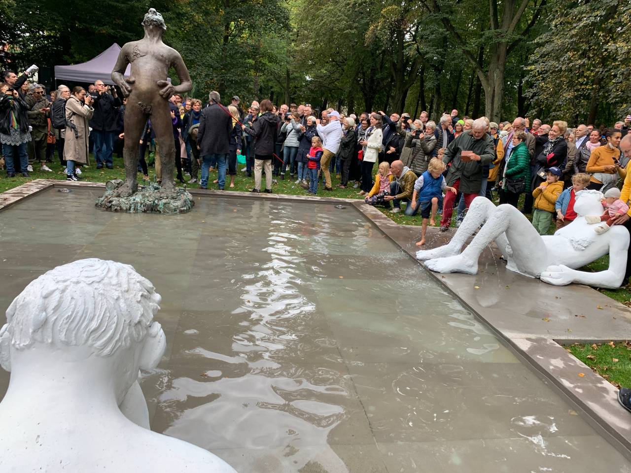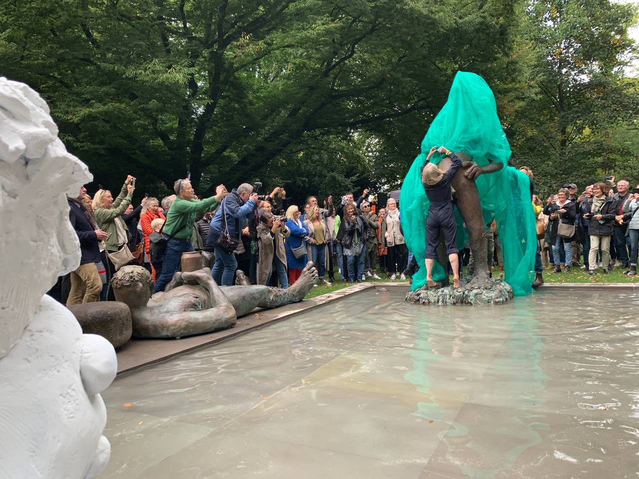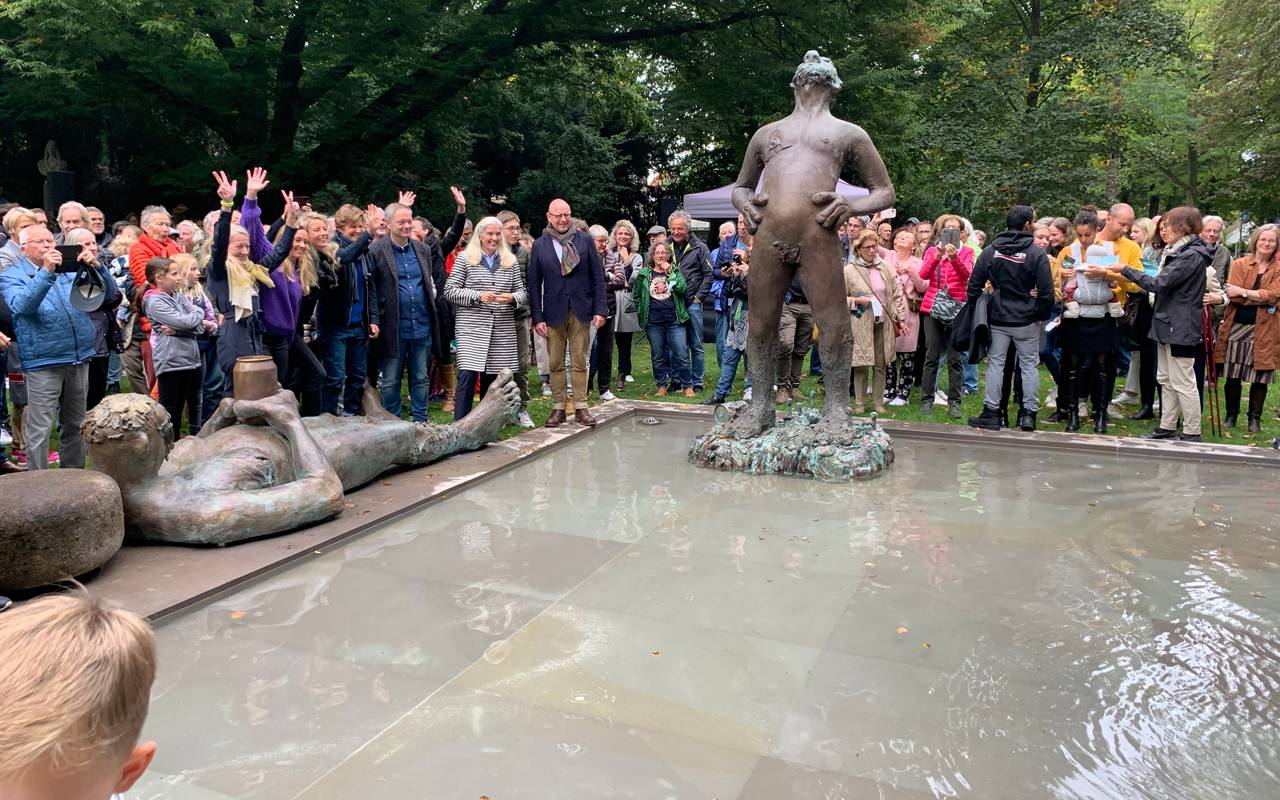 Vier Jahre nach den Skulptur-Projekten 2017 kehrte damit eines der beliebtesten Kunstwerke nach Münster zurück. Das Werk der amerikanischen Künstlerin Nicole Eisenman war Teil der jüngsten Skulptur-Projekte. Vielbesucht, aber auch heftig umstritten. Mehrere Male wurden damals Teile der Skulptur zerstört. An der Feier nahmen die nordrhein-westfälische Ministerin für Kultur und Wissenschaft, Isabel Pfeiffer-Poensgen, sowie Münsters Oberbürgermeister Markus Lewe teil. Lewe sagte in seiner Ansprache: "Lasst uns Münsteraner diesen Brunnen schützen! Wir sind eine offene Gesellschaft und wir sind stolz darauf."