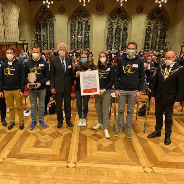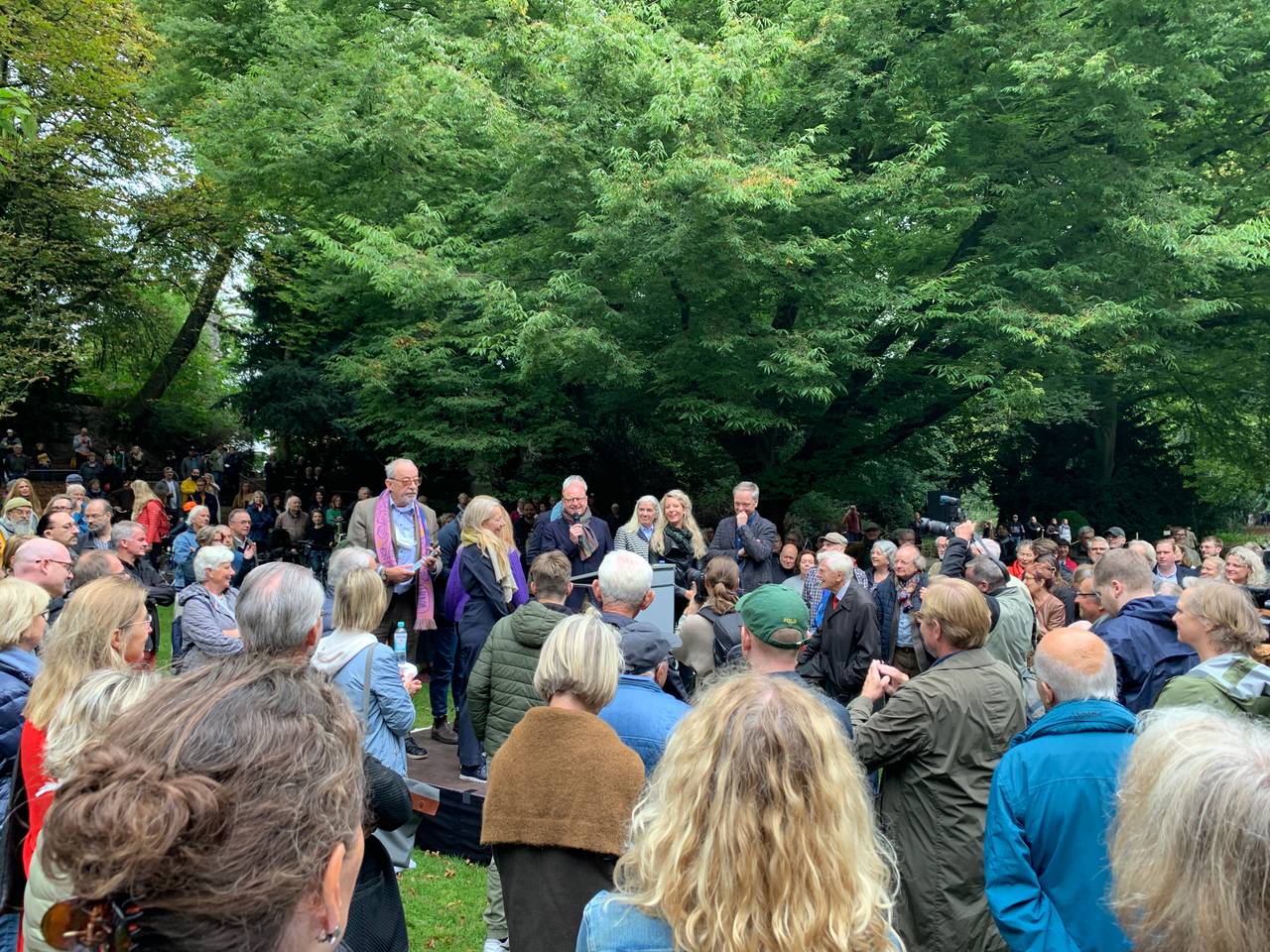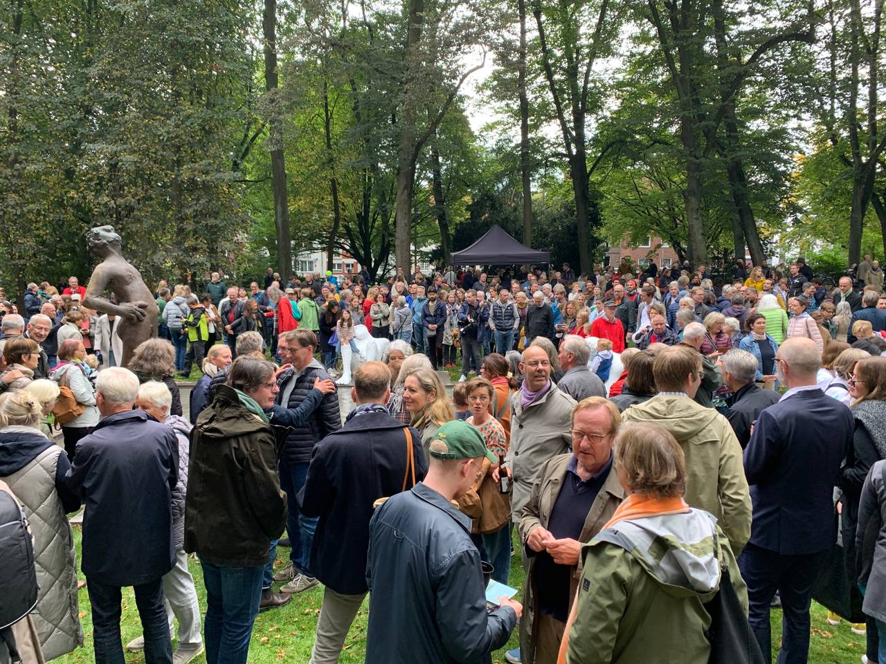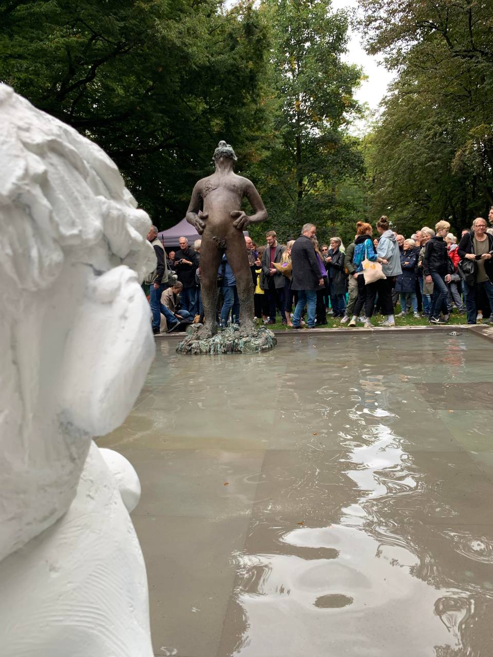 Vier Jahre nach den Skulptur-Projekten 2017 kehrte damit eines der beliebtesten Kunstwerke nach Münster zurück. Das Werk der amerikanischen Künstlerin Nicole Eisenman war Teil der jüngsten Skulptur-Projekte. Vielbesucht, aber auch heftig umstritten. Mehrere Male wurden damals Teile der Skulptur zerstört. An der Feier nahmen die nordrhein-westfälische Ministerin für Kultur und Wissenschaft, Isabel Pfeiffer-Poensgen, sowie Münsters Oberbürgermeister Markus Lewe teil. Lewe sagte in seiner Ansprache: "Lasst uns Münsteraner diesen Brunnen schützen! Wir sind eine offene Gesellschaft und wir sind stolz darauf."