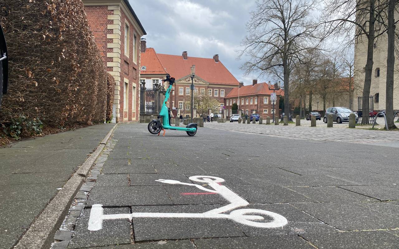 Wegen zahlreicher Beschwerden und viel Ärger über wahllos abgestellte Roller hat die Stadt nun Parkzonen für die aktuell rund 4.500 E-Scooter in Münster eingerichtet. Die Parkzonen sind in den vergangenen Wochen mit weißen Piktogrammen auf dem Boden markiert worden. Ab heute dürfen die Roller dann nur noch auf und um diese Piktogramme herum abgestellt werden. Falschparkern droht ein Verwarngeld in Höhe von 15 Euro. Die Parkzonen werden den Scooter-Nutzern auch in den Apps der Anbieter ausgewiesen. Auch im Display des Rollers gibt es teilweise rote ("Nicht parken!") und grüne ("Parkzone") Leuchten.