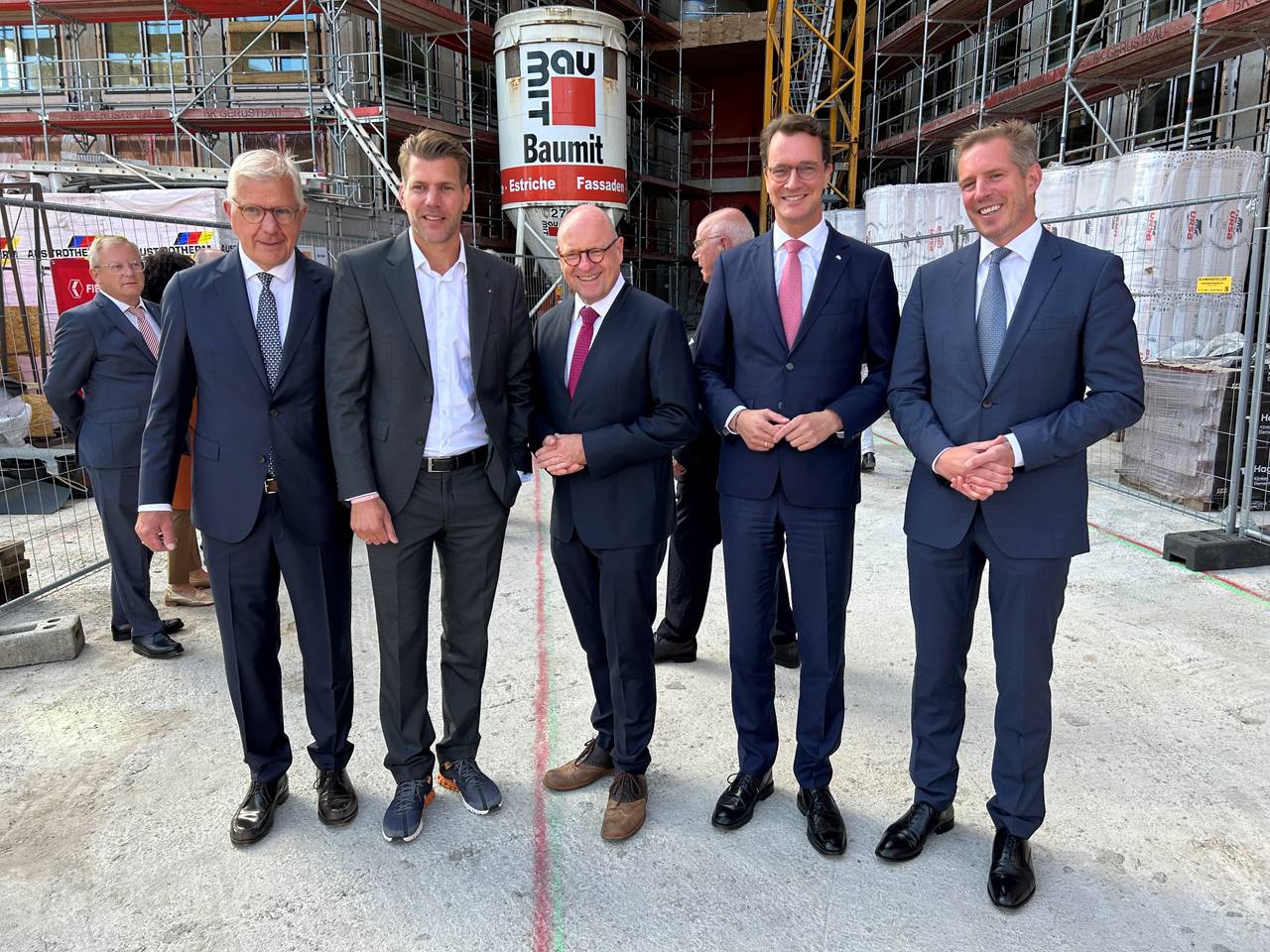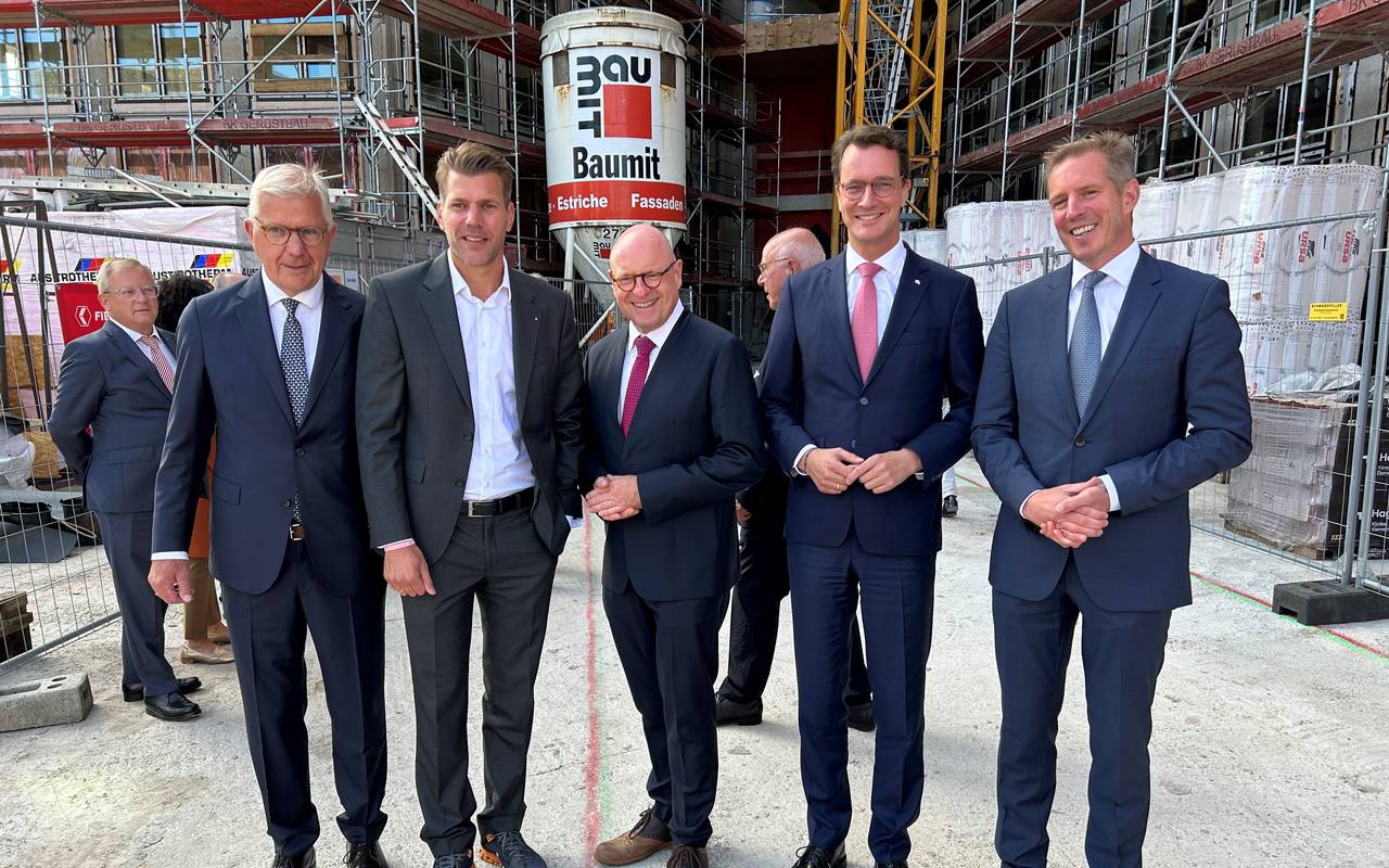 "X-Dock" (sprich: Cross Dock) heißt der neue sechsgeschossige Büro-Komplex, mit dem FIEGE neben dem Hauptsitz in Greven künftig auch ein großes Standbein in Münster haben wird. Im Sommer 2024 soll das Haus fertig sein, so die beiden Geschäftsführer Jens und Felix Fiege. Zur Feier im Rohbau wurden die Gäste deshalb gebeten, sich festlich zu kleiden, aber festes Schuhwerk an den Füßen zu tragen. Unter den Gästen waren NRW-Ministerpräsident Hendrik Wüst, Münsters Oberbürgermeister Markus Lewe und zahlreiche Bundes- und Landespolitiker:innen aus Münster und dem Münsterland.