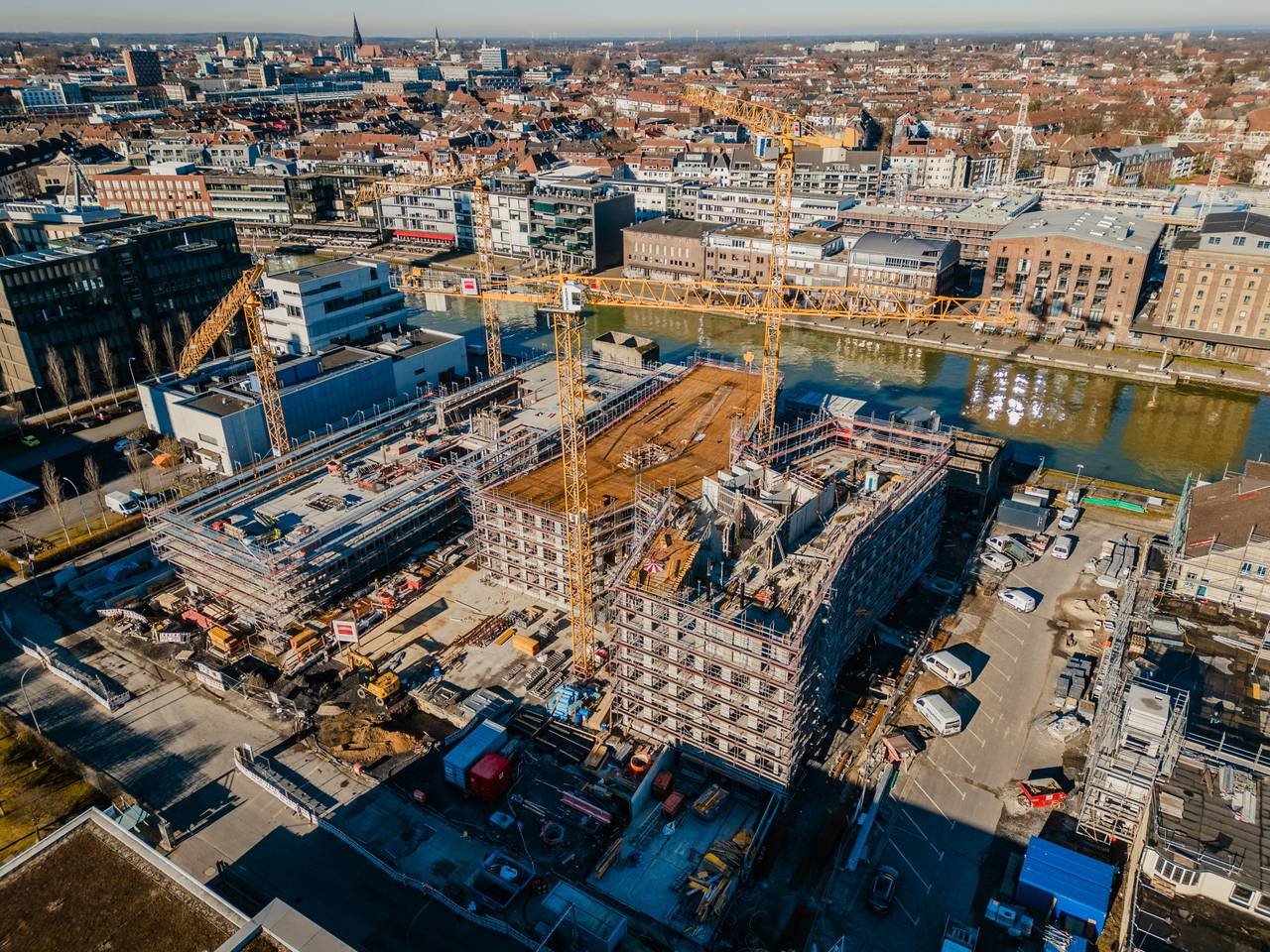 Der Logistik-Konzern FIEGE feierte in Münsters Hafen sein 150-jähriges Firmenjubiläum. Im Rohbau des neuen X-Docks am Hafen gab es gute Ausblicke und gute Aussichten.