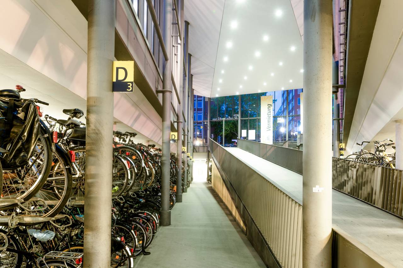 Die Daten der Radstation sind beeindruckend: Auf über 2.500 Quadratmetern gibt es 3.300 Stellplätze, davon 550 persönliche. "Die sind alle ausgebucht", erklärt Hundt. 300 Mieträder und 17 E-Räder sowie Sonderräder komplettieren das Angebot. Vor allem Pendler, aber auch Touristen bilden die Kundschaft. Heute gehört das Rad-Haus am Bahnhof mit seiner markanten Stahl-Glas-Architektur und seinem unterirdischen Innenleben zu Münster wie Dom und Rathaus. Die Münsteraner sind stolz auf ihre Radstation, sie zählt wie selbstverständlich zur Infrastruktur der langjährigen Fahrradhauptstadt der Republik.