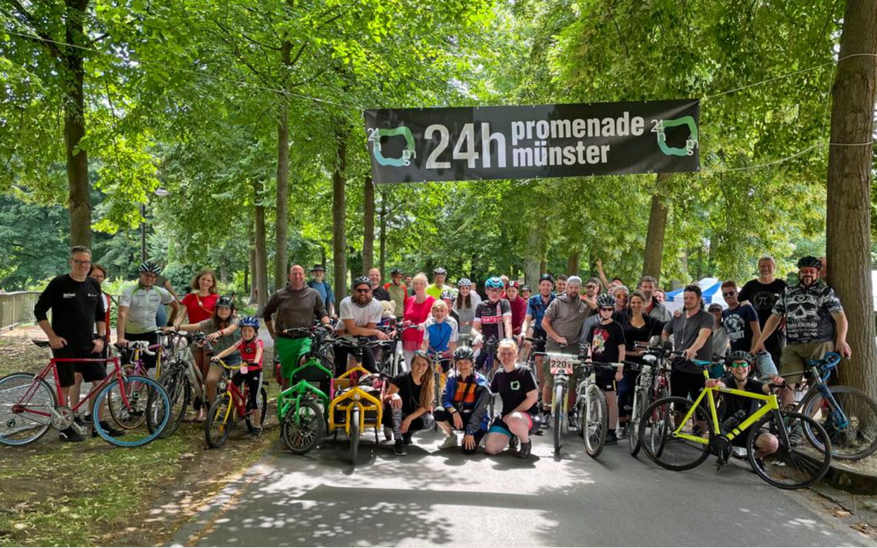 Vom 12. bis zum 13. August findet auf der Promenade wieder das Fahrradrennen "24h Promenade Münster" statt. Dabei sind dieses Jahr insgesamt 100 Teilnehmer und Teilnehmerinnen aus 16 Teams. Jedes Team hat ein soziales Projekt, das es mithilfe eines Sponsors unterstützen möchte. Wie bei einem Staffellauf muss bei dem Rennen immer ein Teammitglied auf der rund 4,5 Kilometer langen Rennstrecke - der Promenade - unterwegs sein. Pro geradelter Runde spenden die Sponsoren einen vorher festgelegten Geldbetrag.