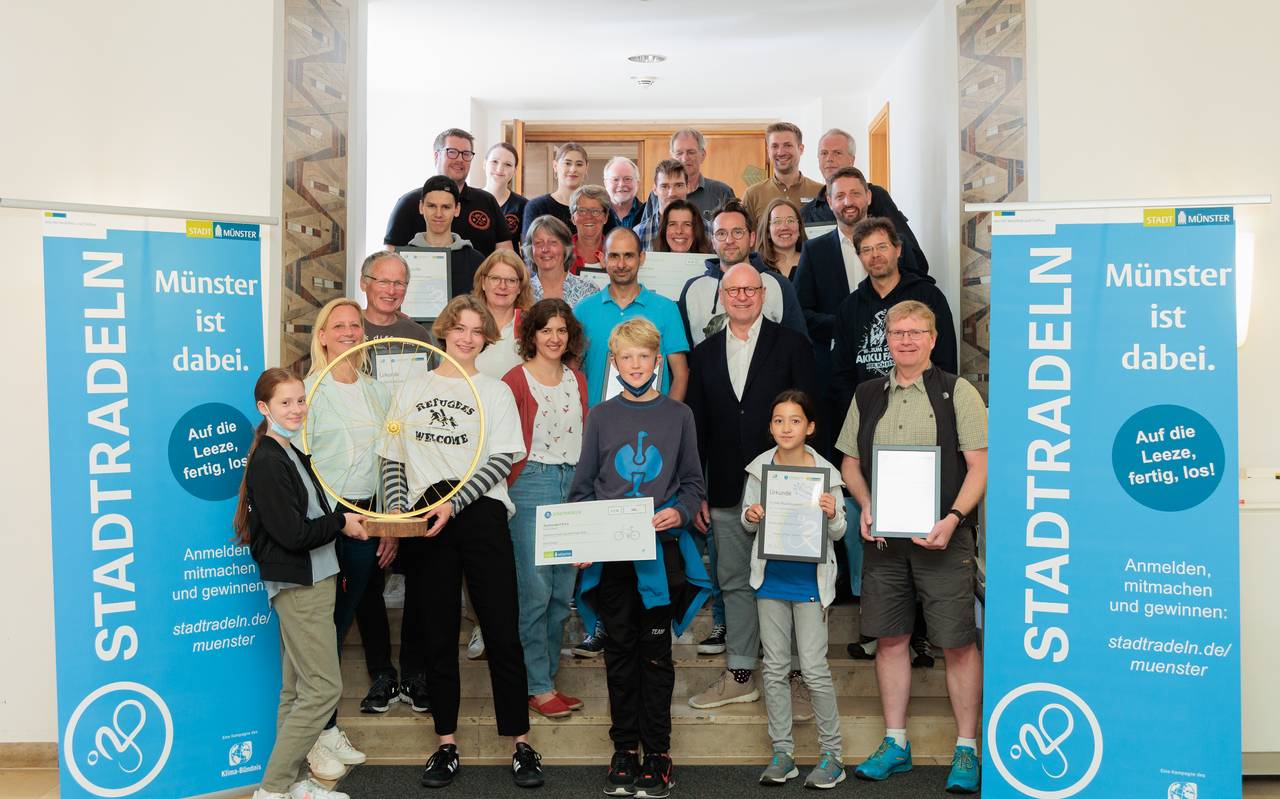 Neben der Gesamtschule Münster-Mitte konnten sich auch die Peter-Wust-Schule, die Paul-Gerhard-Schule sowie das Anne-Frank-Berufskolleg über eine finanzielle Anerkennung freuen. Diese Schulteams erreichten beim Sonderwettbewerb "Schulradeln" auf lokaler Ebene die besten Gesamt- und Durchschnittsleistungen aller Grundschulen und weiterführenden Schulen.