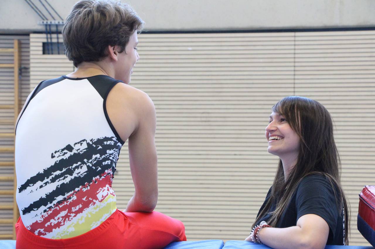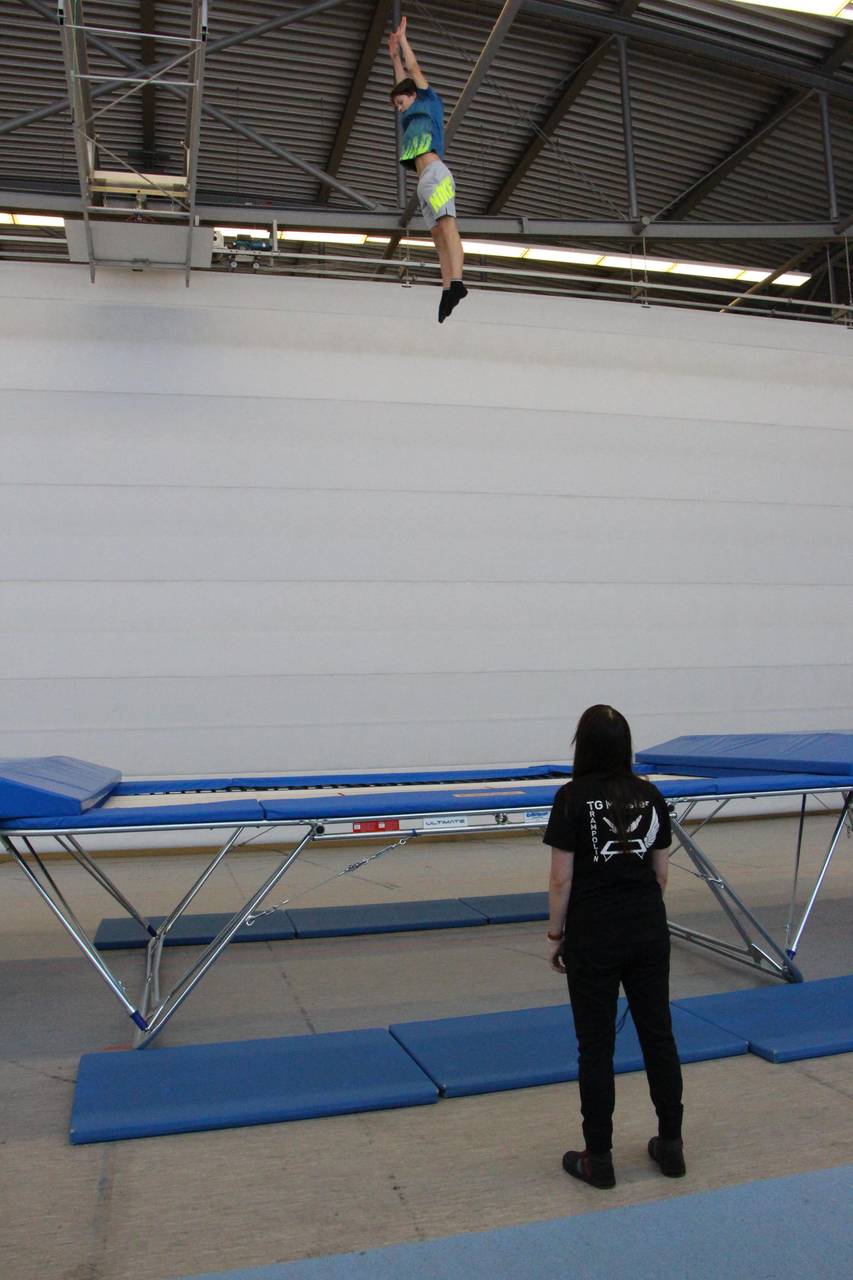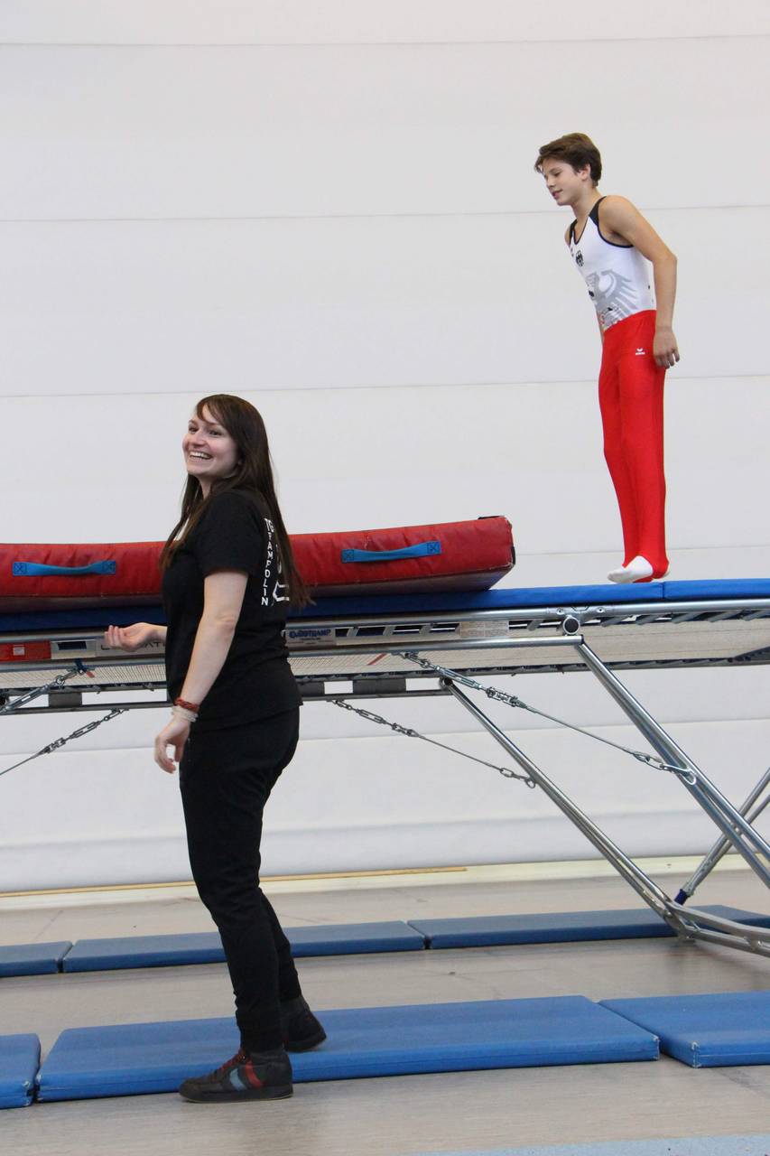Adrians Trainerin Sina Klabunde ist 26 Jahre alt. Seit sie 15 ist, ist sie als Übungsleiterin und Kampfrichterin und später als Trainerin tätig. Sie ist aber nicht von Verein als Trainerin angestellt, sondern macht das seit vier Jahren als Hobby. Eigentlich promoviert sie in Chemie. Seit einem Unfall springt sie selbst nicht mehr, hat aber Freude daran, ihr Wissen an Kinder weiterzugeben. Adrian und Sina sind ein echtes Dream-Team.