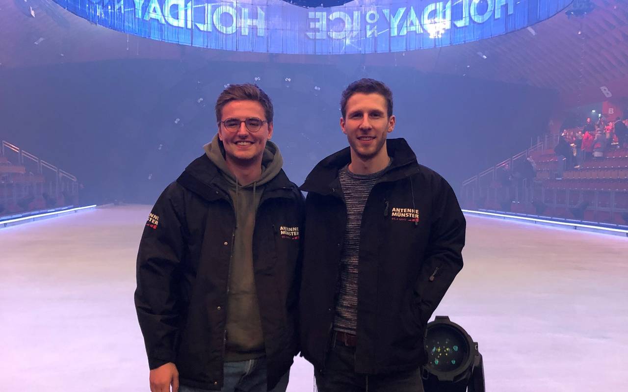 Begleitet von unseren ANTENNE MÜNSTER-Moderatoren Jonas Menke und Jannis Weiser durften die Gewinner:innen dabei noch selbst aufs Eis und einige Runden drehen. Dazu gab's Catering und ein Kennenlernen mit einigen Künstler:innen der Show.