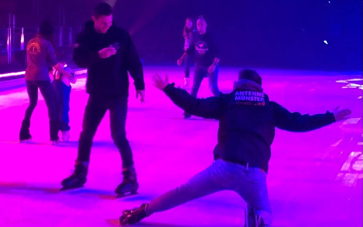 Am Donnerstagabend (30.12.) dauerte die Show dann ausnahmsweise etwas länger. Nach der regulären Show stieg für einige ANTENNE MÜNSTER-Hörer:innen, die im Vorfeld bei unserem Facebook-Gewinnspiel gewonnen hatten, noch das "ANTENNE MÜNSTER-After-Show Skating".