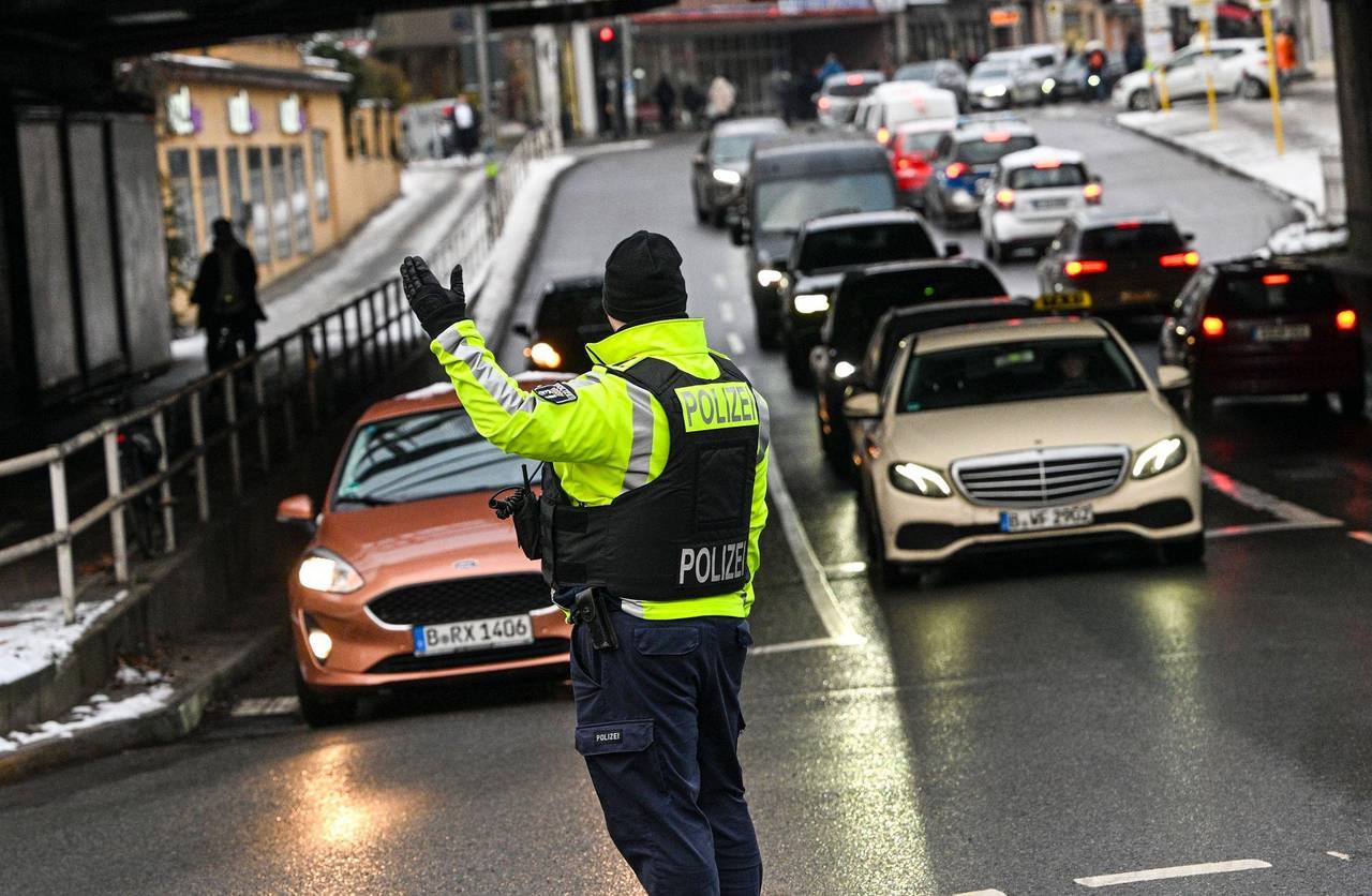 Die Polizei regelt den Verkehr an einer Kreuzung am S-Bahnhof Zehlendorf.
