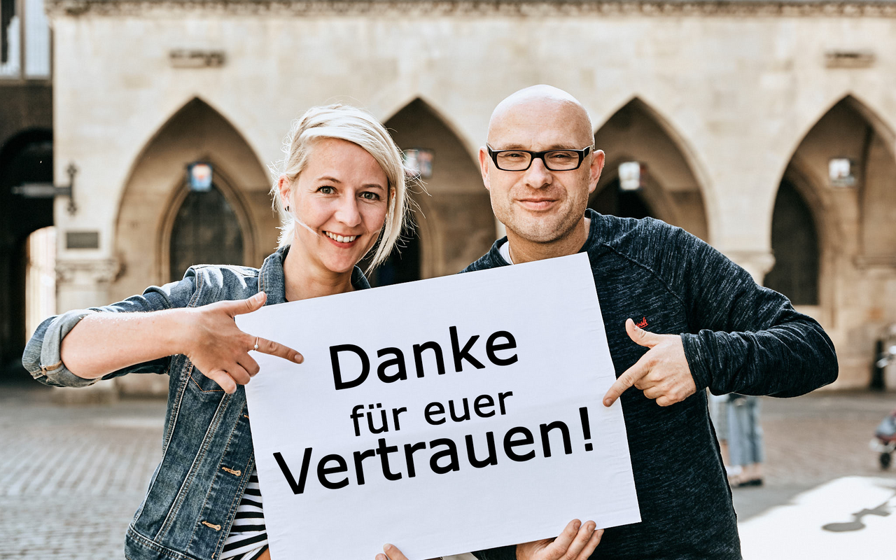 Wir bedanken uns in diesem Zusammenhang ausdrücklich auch beim Corona-Krisenstab der Stadt, seinem Leiter Wolfgang Heuer sowie Oberbürgermeister Markus Lewe. Beide sind auch in der größten Krise quasi Tag und Nacht für den Sender erreichbar gewesen. Das war wichtig für alle Münsteranerinnen und Münsteraner, die sowohl im Radio als auch auf unseren Online-Kanälen durchgehend schnelle und verlässliche Informationen abrufen konnten.