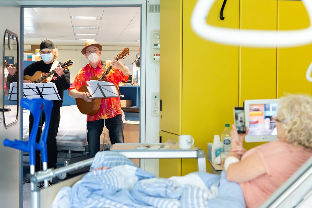 Damit auch Patient:innen mit eingeschränkter Beweglichkeit an Kulturveranstaltungen teilnehmen können, haben die Mitarbeitenden ein neues Konzept ins Leben gerufen, das unter anderem Musik und Lesungen direkt ans Patientenbett bringen soll. Mit dem Pilotprojekt „Mobile Musik“ wurde es in den vergangenen Monaten bereits einige Male in die Praxis umgesetzt.