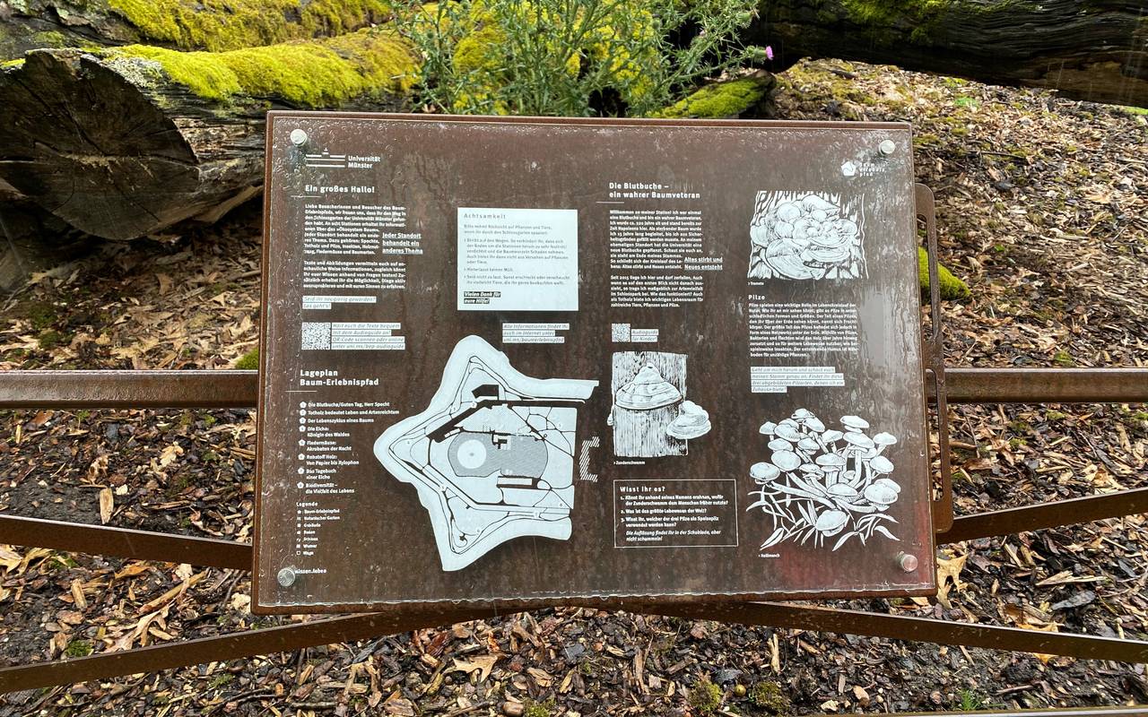 Der seit 2019 bestehende Pfad informiert auf einem Rundweg mit acht Stationen über heimische Bäume des Münsterlandes. Er hat jetzt neue Schilder bekommen. Darauf befinden sich QR-Codes. Über die gelangt man zu dem Begleittext.