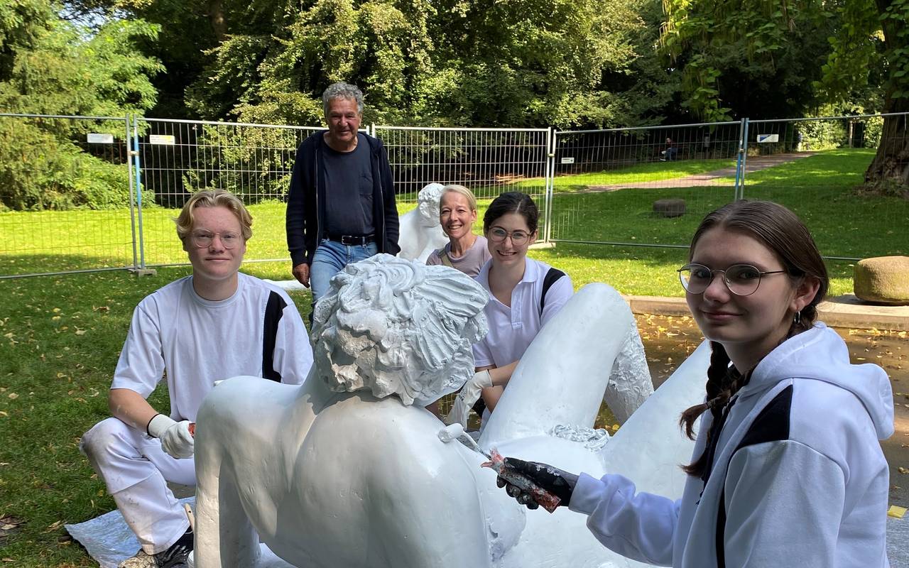 Das ist ein ganz besonderes Azubi-Projekt von Brillux hier in Münster: Angehende Maler:innen und Lackierer:innen haben in den letzten Tagen den Eisenman-Brunnen an der Promenade wieder auf Vordermann gebracht.