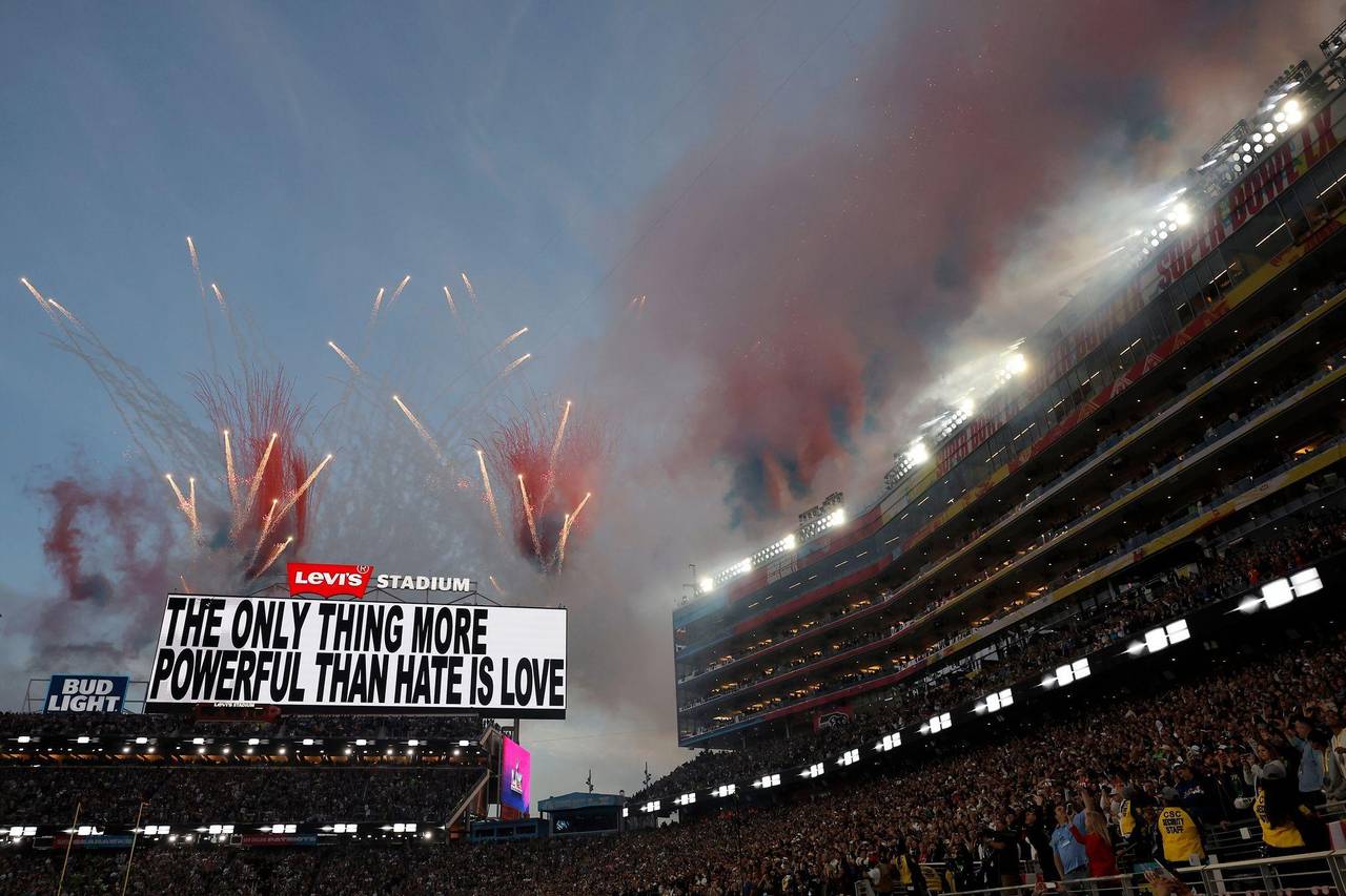 Außerdem hielt Bad Bunny, ein ausgesprochener Kritiker der radikalen Abschiebepolitik der US-Regierung, einen Football mit der Aufschrift «Gemeinsam sind wir Amerika» in die Kamera, sagte «Gott segne Amerika» und zählte neben den USA zahlreiche lateinamerikanische Länder auf. Im Hintergrund leuchtete auf einer Leinwand der Schriftzug: «Das Einzige, was mächtiger ist als Hass, ist Liebe.»