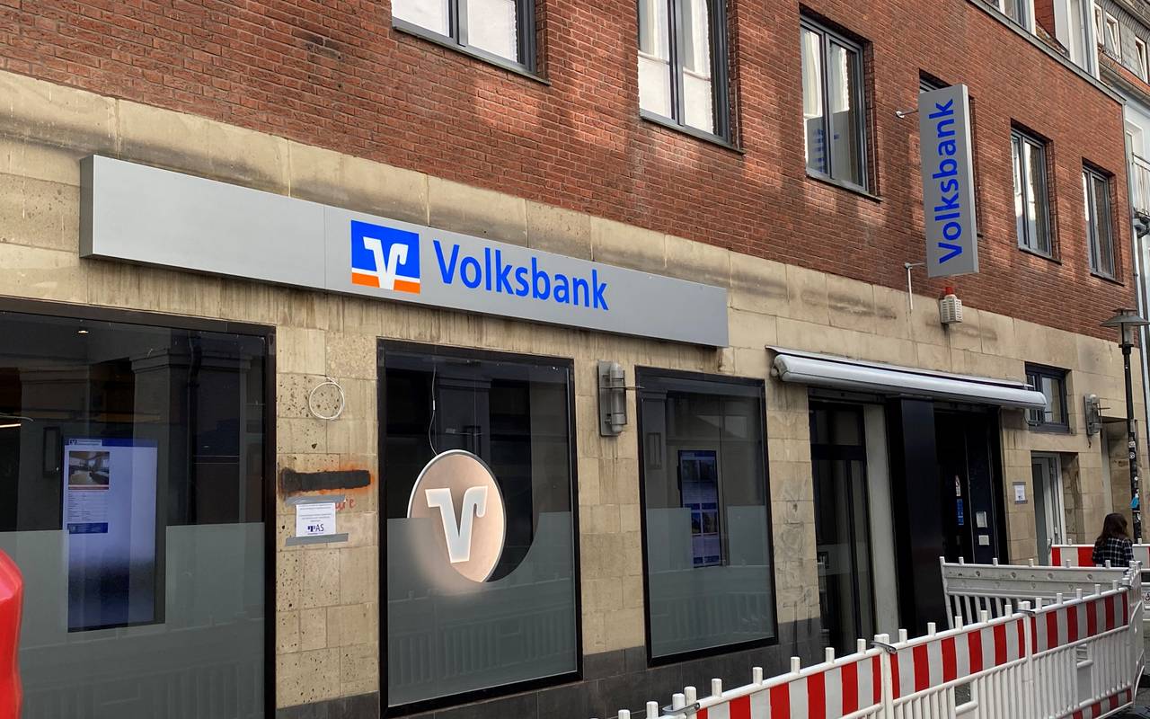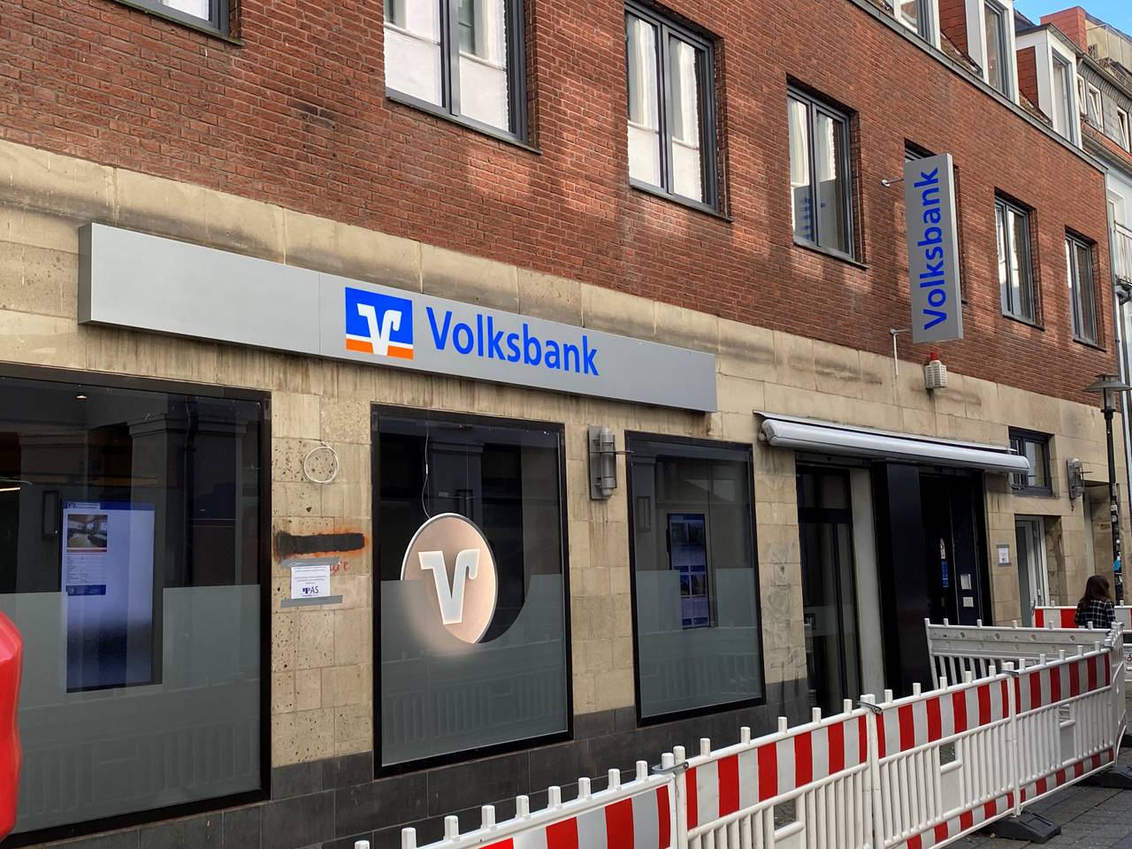 Am Hauptsitz der Volksbank im Münsterland eG ist zur Zeit viel los. Bis der Umbau fertig ist, gibt es eine neue Hauptstelle am Alten Steinweg.