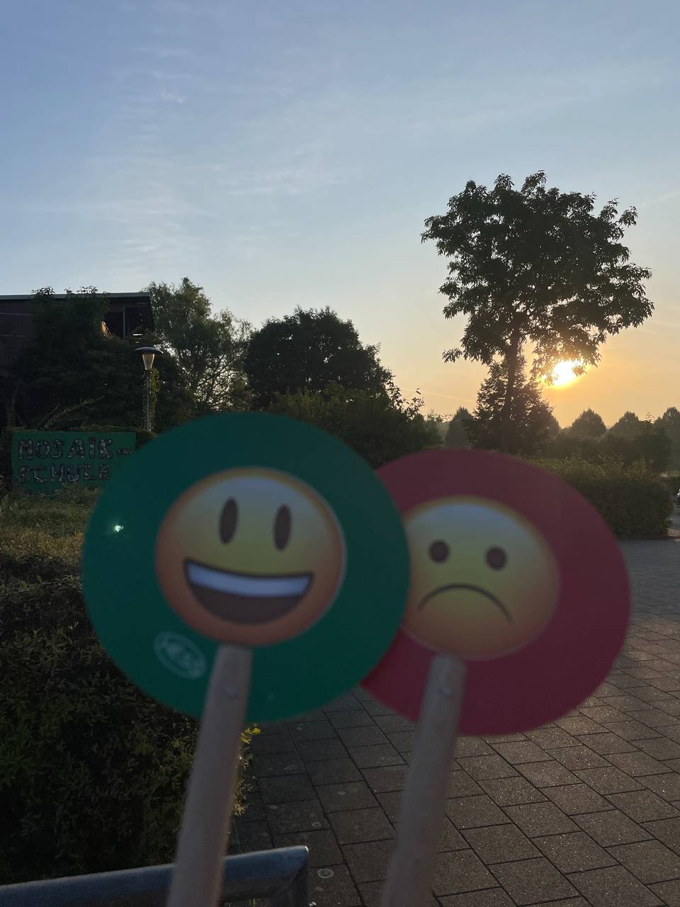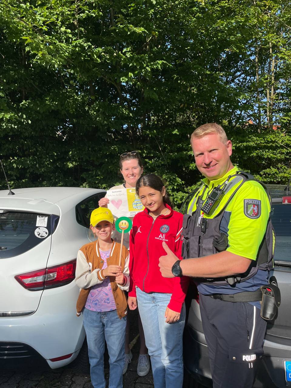 Die Polizei sagt im ANTENNE MÜNSTER-Interview, dass es ein ausgewogenes Verhältnis von denen gab, die sich an die Regeln gehalten haben, und denen, die etwas zu schnell unterwegs waren. Vor den Schulen gilt Tempo 30. Am schnellsten waren zwei Autofahrende mit 49km/h. Die Schüler:innen haben mit unseren besonderen Kellen darauf aufmerksam gemacht, ob sie zufrieden waren oder nicht: Für die, die vorbildlich gefahren sind, gab es einen grünen, fröhlichen Smiley. Alle, die zu schnell waren, bekamen den roten, traurigen Smiley von den Kindern gezeigt.
