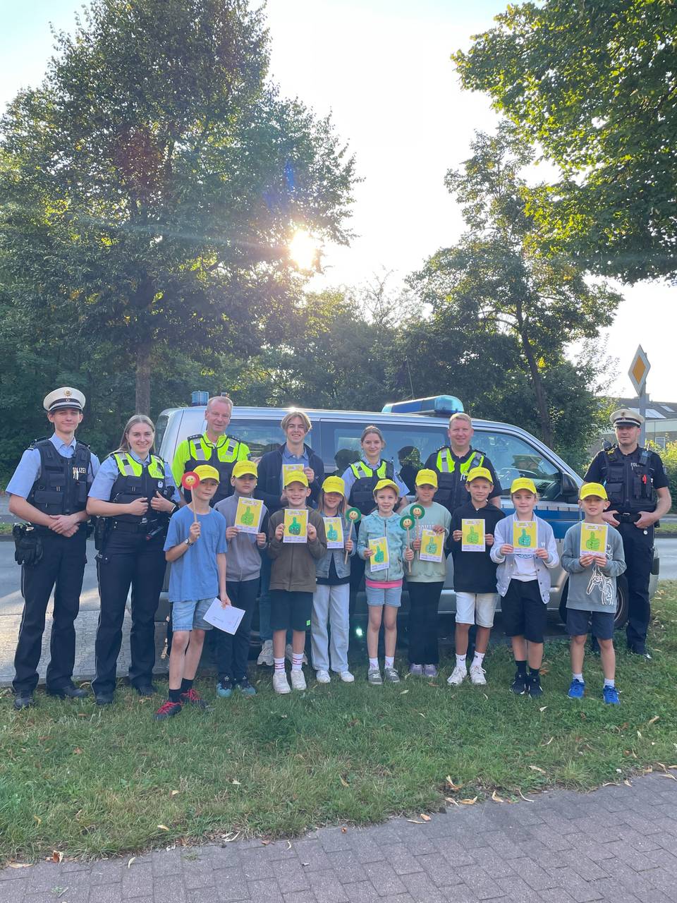 Die Aktion "Münster sieht gelb" findet schon seit einigen Jahren immer zum Schulanfang statt und läuft in diesem Jahr zum 20. Mal. Die Aktion wird unterstützt von der Verkehrswacht, der DEKRA, den Stadtwerken, der Polizei, Ernsting's Family und dem Schulamt der Stadt.