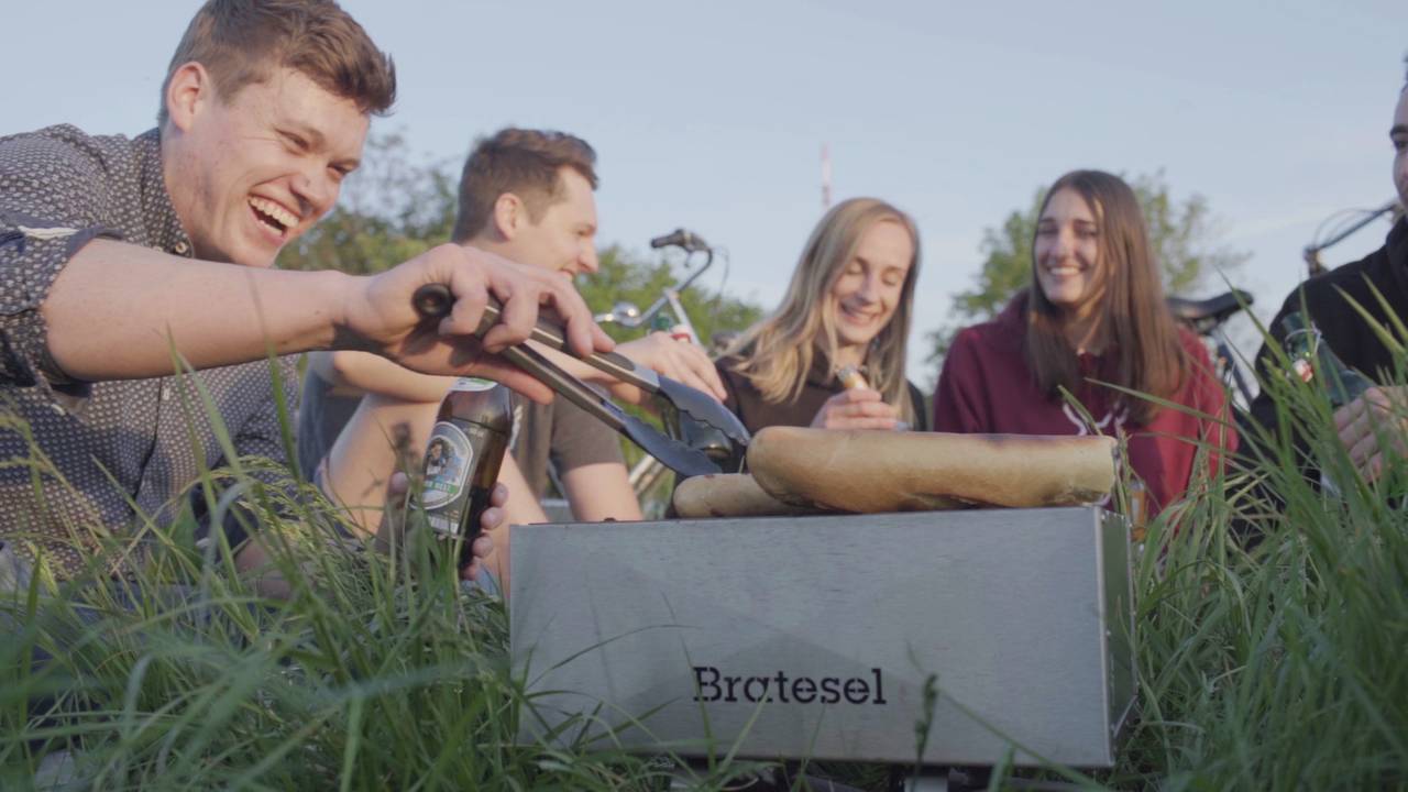 Nie mehr unbequem den Grill, die Kohletüte und den ganzen anderen Kram mitschleppen oder aus praktischen Gründen auf den günstigen Einweggrill zurückgreifen, wenn es mal mit den Freunden in den Park oder auf die Wiese geht. Das war die Idee, die hinter dem Projekt "Bratesel" steckt. Leon Brinkhaus, Produktdesign-Student an der FH Münster, ist der Ideengeber und entwickelte bereits im Zuge seiner Bachelorarbeit 2017 erste Prototypen des "Bratesels". Zusammen mit Philipp Roß, BWL-Student an der FH Münster, verfeinerte er seine Idee in den letzten anderthalb Jahren:
