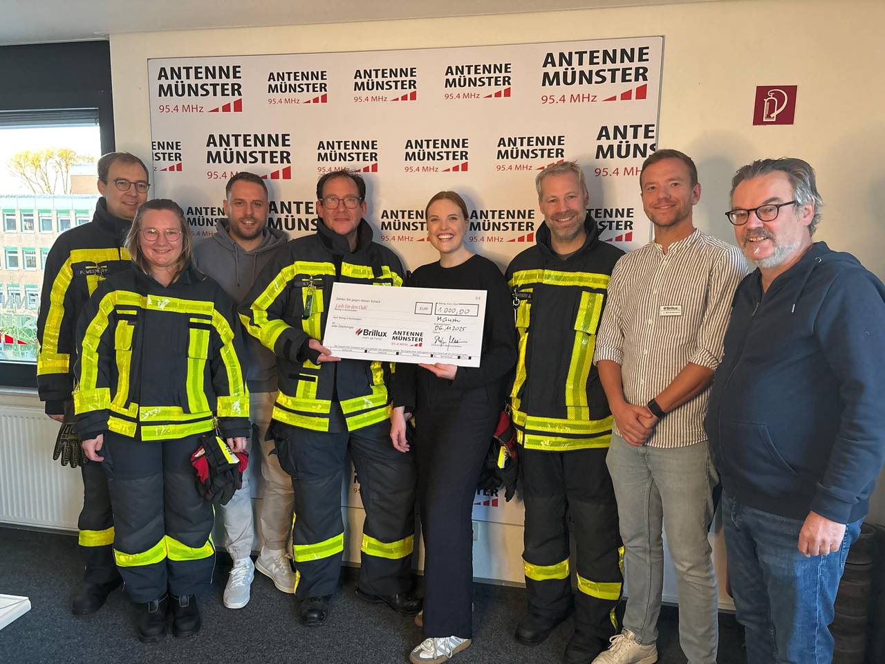 Herzlichen Dank an den Löschzug Altstadt, dass ihr das mitgemacht habt. Als Lohn gab es in der ANTENNE MÜNSTER-Redaktion Kaffee, eine Führung und einen Scheck über 1.000 Euro von ANTENNE MÜNSTER und unserem Partner BRILLUX.