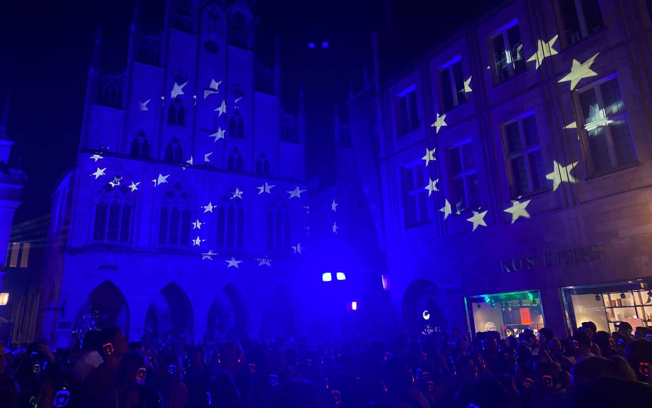 Unter dem Motto "Celebrate Democracy" haben Tausende das Comeback der Kopfhörerparty gefeiert. Der Prinzipalmarkt wurde so zum Open-Air-Club.