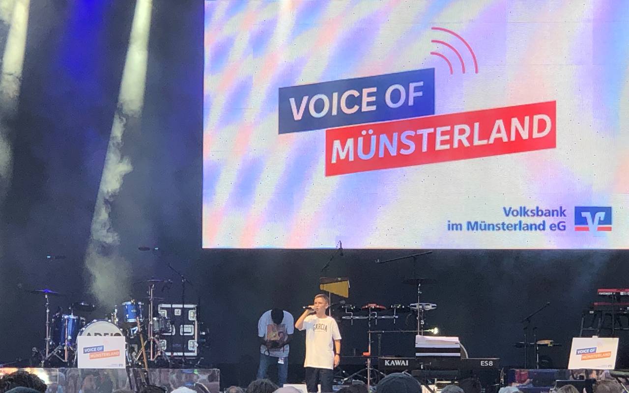 Bereits zum siebten Mal hat die Volksbank im Münsterland nach Gesangstalenten gesucht. Die Finalist:innen des Wettbewerbs "Voice of Münsterland" durften am Sonntag auf der ANTENNE MÜNSTER-Bühne am Domplatz auftreten.
