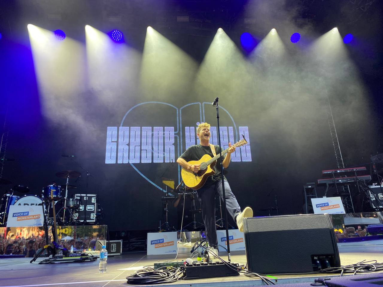 Ausschließlich mit seiner Gitarre und Stimme bewaffnet heizte im Anschluss Gregor Hägele der Menge ein. Gregor hat es im Jahr 2017 ins Halbfinale der TV-Show „The Voice of Germany“ geschafft und die neu gewonnene Aufmerksamkeit genutzt, um sich einen Namen zu machen. Ein Plattenvertrag mit Universal Music, Live-Support-Shows bei erfolgreichen Musiker Kollegen, eine erste, komplett ausverkaufte Solo-Tour und Millionen Streams auf Spotify. Von ihm dürfen wir in Zukunft wohl noch einiges erwarten.
