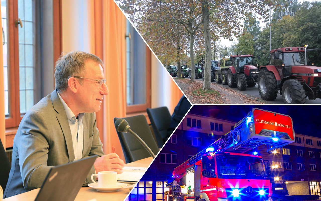 Wolfgang Heuer betont, dass die angekündigten Bauerndemos am Montag vor allem Sache der Polizei Münster als Versammlungsbehörde seien. Dennoch fordert er als für die Feuerwehr zuständiger Ordnungsdezernent, darauf zu achten, dass Einsatzfahrzeuge weiterhin problemlos ihr Ziel erreichen können. Das gilt sowohl für die Demonstranten, als auch für alle anderen Verkehrsteilnehmer: