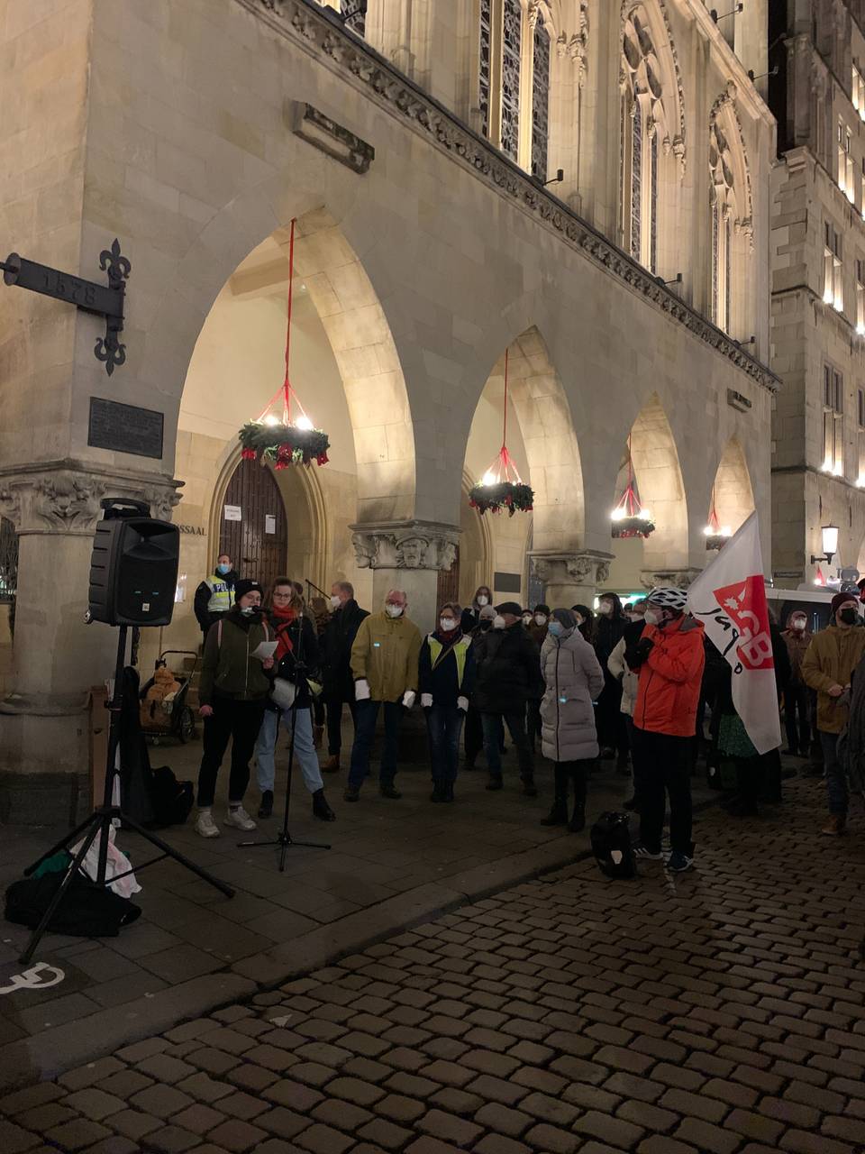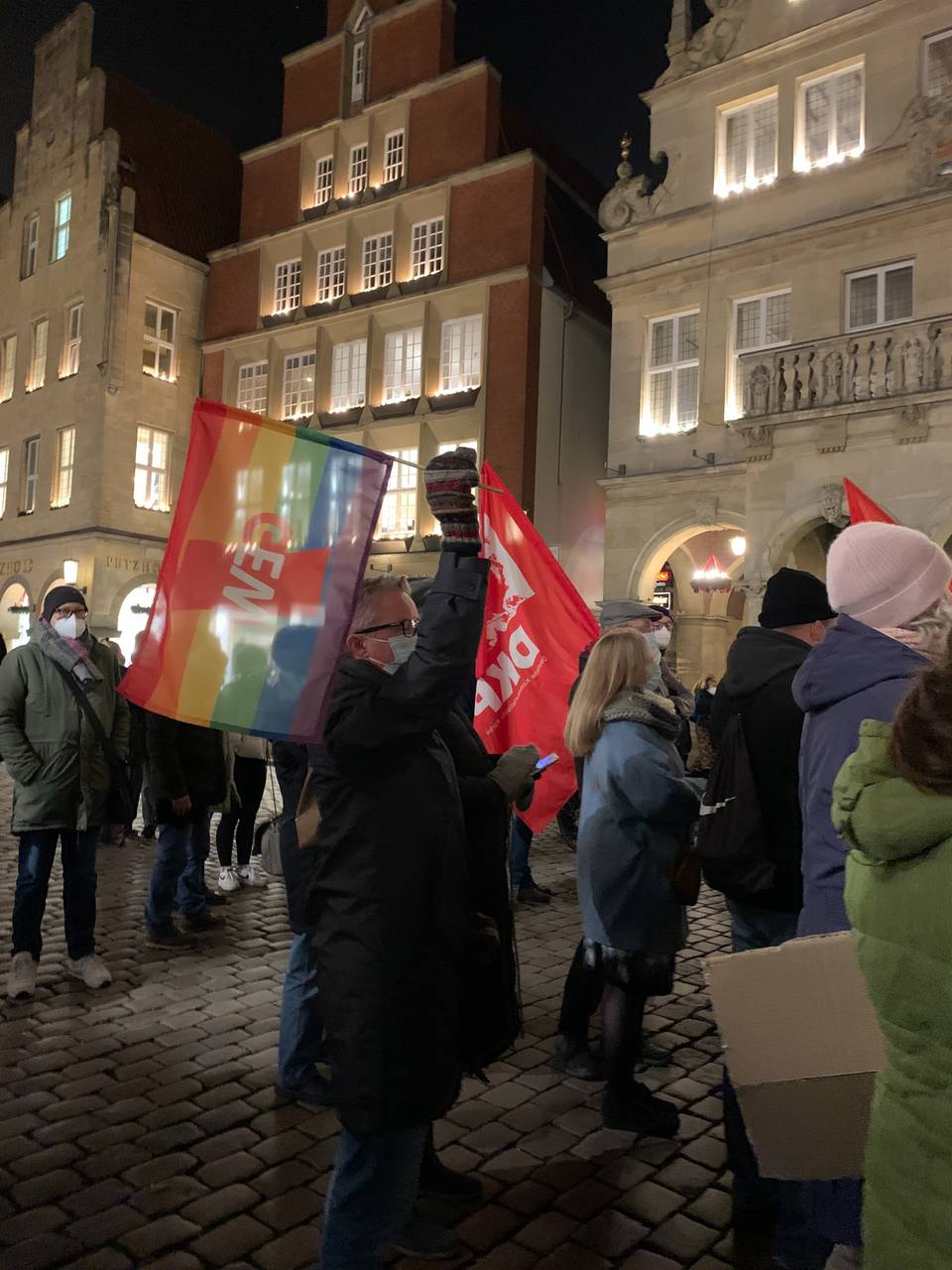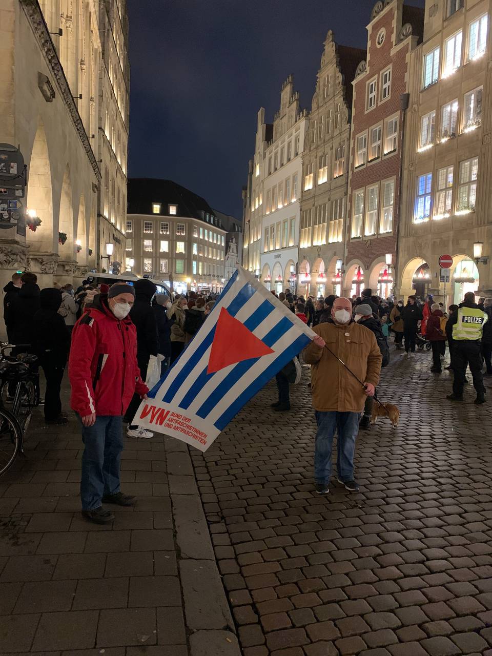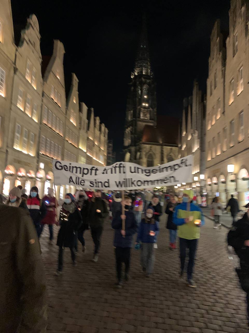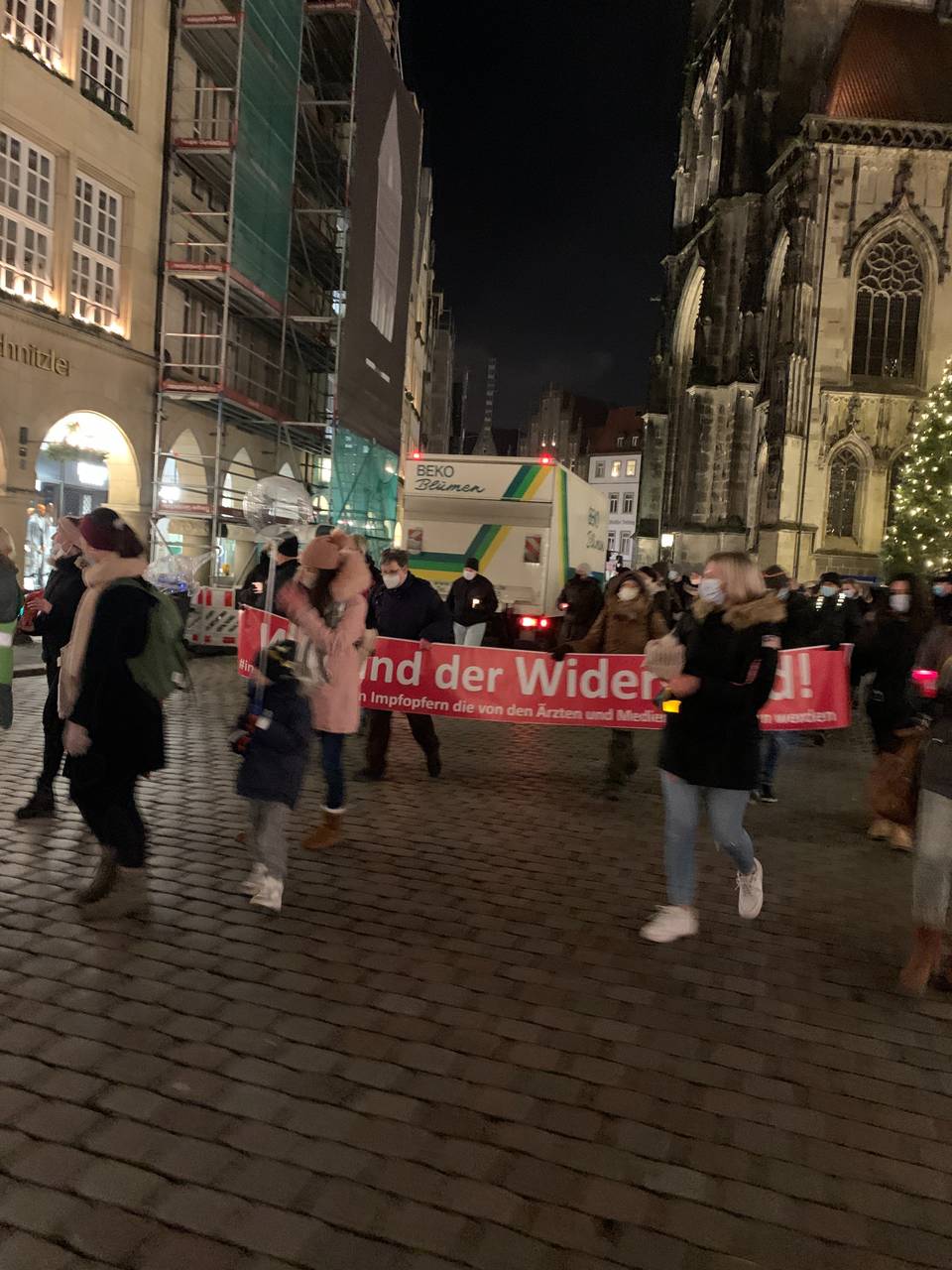 Wie schon in den vergangenen Wochen treffen sich auch an diesem Montag vor Weihnachten Impfskeptiker:innen und Corona-Leugner:innen zum sogenannten "Montagsspaziergang" in Münster. Bereits am Wochenende hatte es in mehreren deutschen Städten ähnliche Demonstrationen gegeben.