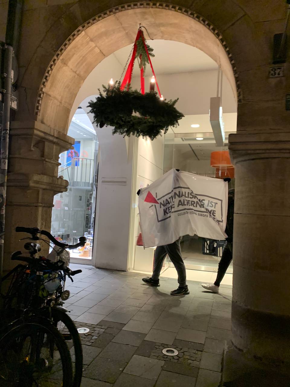 Auch am heutigen Montag trafen sich Impfskeptiker:innen zum „Montagsspaziergang“, um gegen die aktuellen Corona-Maßnahmen zu protestieren. Das Bündnis „Keinen Meter den Nazis“ rief zur Gegendemo auf.