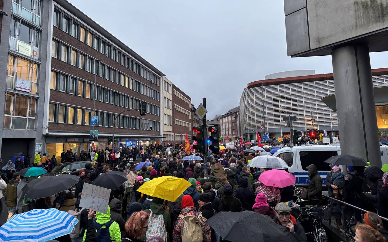 Nachdem die Unionsfraktion gemeinsam mit der AfD und der FDP am Mittwoch (29.01.) im Bundestag einen Antrag zu Migrationspolitik beschlossen hat, demonstrieren rund 2.800 Menschen (Schätzung der Polizei Münster) heute (30.01.) vor dem CDU-Büro. Die Veranstalter sprechen von mehr als 3.500. Aufgerufen zu der Mahnwache haben die "Busters Münster", auch das Bündnis "Keinen Meter den Nazis" und die Linkspartei haben sich der Versammlung angeschlossen. Sie wollen damit deutlich zeigen, dass sie den gemeinsamen Beschluss als Fall der Brandmauer gegen Rechtsextremismus sehen. Den Inhalt des gestern beschlossenen Unionsantrages nennen die Busters menschenverachtende, rassistische Abschottungspolitik. Nach Angaben der Polizei Münster verlief die Demonstration auf der Mauritzstraße friedlich. Während des Nachmittags ist es rund um die Mauritzstraße zu Verkehrsbehinderungen gekommen. Die Polizei prüft in diesem Zusammenhang, ob der Versammlungsleiter seinen Pflichten zur Sorge um den ordnungsgemäßen Ablauf der Versammlung in ausreichender Form nachgekommen ist, heißt es in einer Mitteilung.