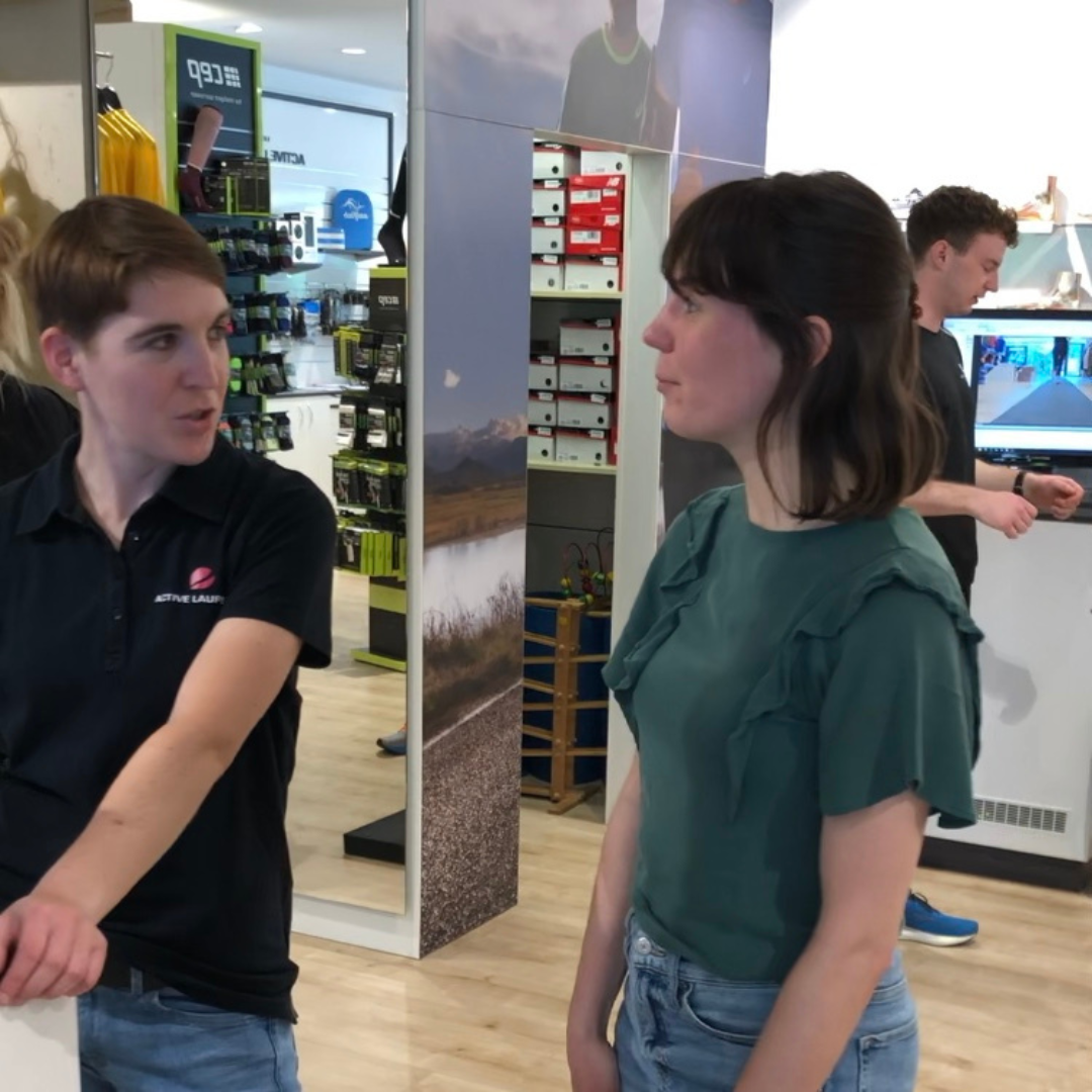 Die richtige Vorbereitung ist schon die halbe Miete, haben wir uns gedacht. Darum starten wir unser Training mit einer Beratung im Active Laufshop am Ludgerikreisel. Das Team misst unsere Füße aus, filmt uns beim Hin- und Herlaufen auf der Teststrecke und am Ende wissen wir: Welche Schuhe sind perfekt für unsere Füße? Welche Schuhgröße ist für uns die richtige bei Laufschuhen und wie beugen wir Schmerzen durch das Lauftraining am Besten vor? Wir können euch nur empfehlen, euch bei Laufschuhen im Fachhandel wie dem Active Laufshop beraten zu lassen und nicht auf gut Glück Schuhe im Internet zu bestellen. Eine solche Beratung kostet dort im Normalfall 25 Euro. Der Betrag wird aber mit dem Kaufpreis verrechnet, wenn ihr die Schuhe im Active Laufshop kauft. Dort gibt es für jeden Fuß das passende Modell von verschiedenen Brands. Danke an dieser Stelle an unseren Partner Brooks, der unserem Team kostenlos die passenden Schuhe zur Verfügung stellt.