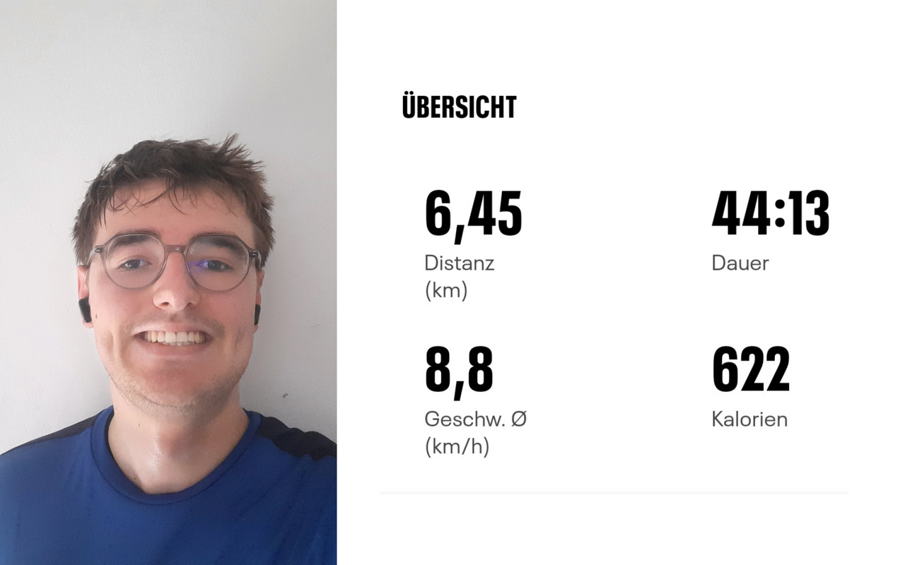 5. Juni (Jonas): Zeit, mich auch mal hier zu verewigen! Im März und April hab ich zusammen mit Lena bereits ein paar Läufe rund um die Promenade absolviert. Da fühlte ich mich irgendwann schon ganz gut drin. Dann kamen allerdings erstmal 3 Wochen Urlaub, in denen ich schön die Beine hochgelegt habe. Passend zum "Tag des Laufens" bin ich jetzt heute wieder ins Training eingestiegen und siehe da: die Form hat gar nicht so stark gelitten! Ich bin etwas über 8 Kilometer in knapp 47 Minuten gelaufen. Das ist schon ganz ordentlich find ich, aber da geht noch mehr!