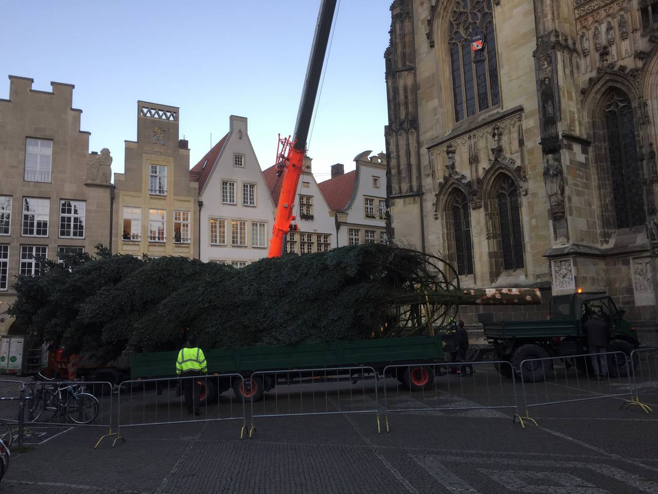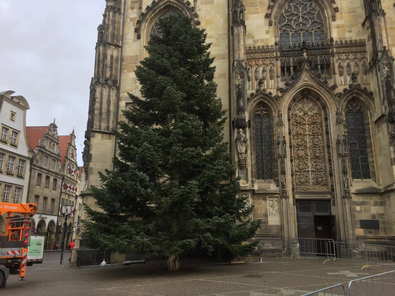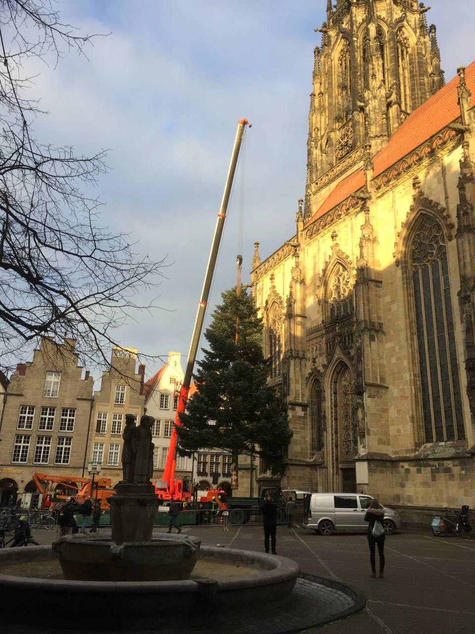Heute (19.11.) um 9 Uhr morgens, so der Zeitplan, wolle die Feuerwehr die Tanne vor der Lambertikirche aufstellen, so Baumexperte Hubertus Wilmers. Sie ist ein richtiger "Okolyt", so Wilmers: