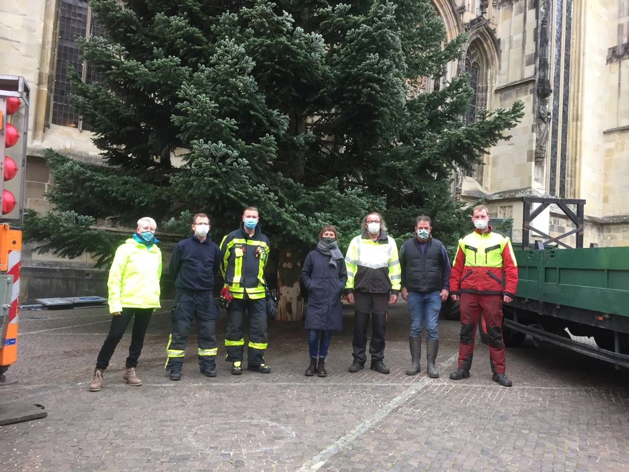 Wie schon seit über 25 Jahren hat Baumexperte Hubertus Wilmers die Tanne organisiert. Er hat sie ausgesucht und brachte sie auch in diesem Jahr in seinem Unimog mit Tieflader wieder an ihren Platz. Und dieses Jahr ist es ein ganz besonderer Baum. Denn er kommt direkt aus Münster. Das ist laut Wilmers eher selten - und kam zum Beispiel 2008 und 2015 vor. 2008 kam die Tanne aus Handorf, 2015 aus Angelmodde.