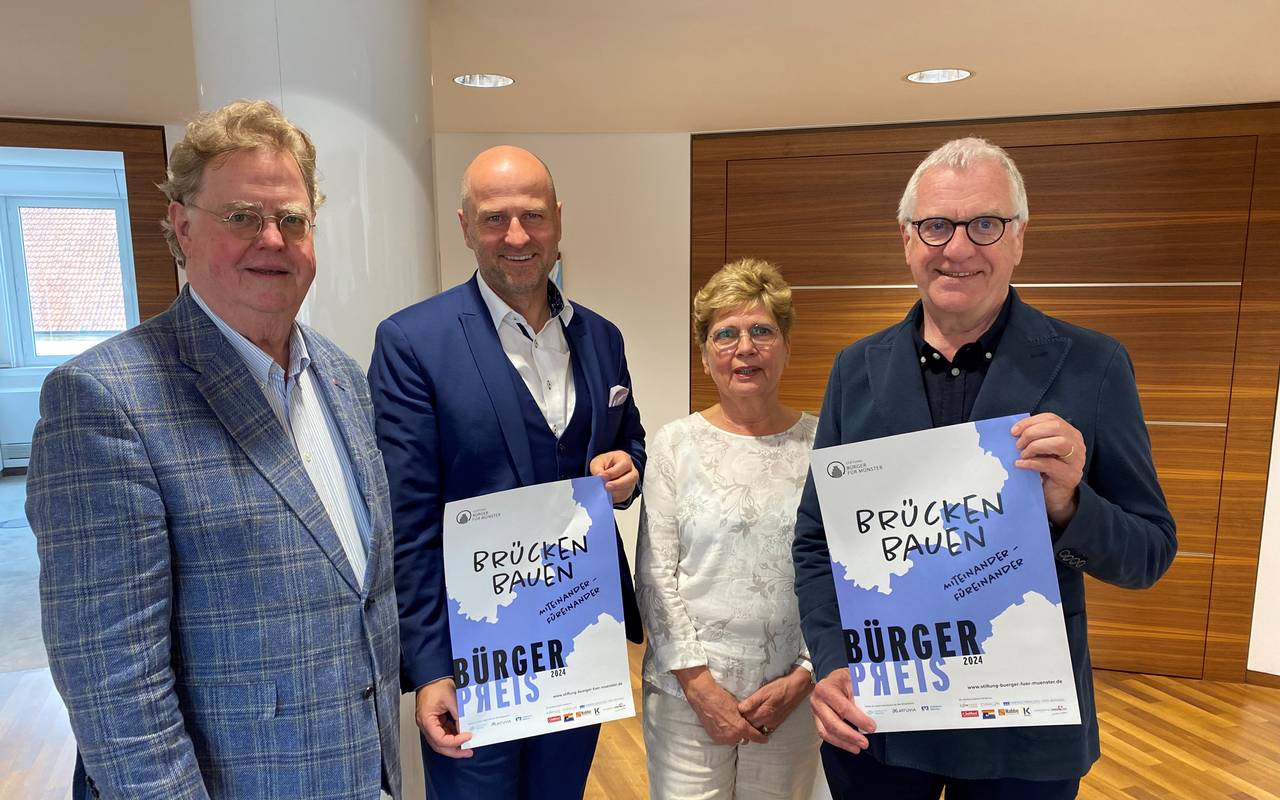 Unter dem Thema "Brücken bauen - Miteinander Füreinander" waren Vereine, Organisationen und Initiativen in Münster aufgefordert, Projekte einzureichen, die sich in besonderer Weise für gegenseitige Verständigung und Vermittlung einsetzen. "Wir wollen mit unserem Bürgerpreis Initiativen auszeichnen, die in diesen herausfordernden Zeiten in vorbildlicher Weise Trennendes überwinden und die die Vielfalt der Gesellschaft vor allem als Chance und Bereicherung verstehen", erklärte Wilhelm Weischer, der Vorstandsvorsitzende der Stiftung, in seiner Begrüßung. "Es geht darum, in gegenseitigem Respekt und voller Wertschätzung Brücken zwischen verschiedenen Kulturen, Religionen, Generationen, Meinungen und unterschiedlichen Positionen zu bauen".