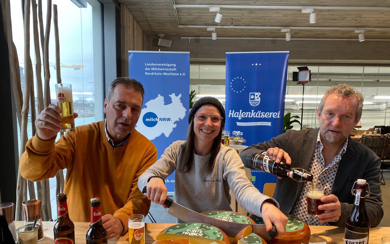 Die neue Spezialität aus NRW "Echte Fründe" wurde nicht ohne Grund in Münster vorgestellt. Denn nicht nur die herstellende Käserei befindet sich in der westfälischen Stadt. Im Münsterschen Rathaus am Prinzipalmarkt ist auch der "Platz des Westfälischen Friedens". Kein schlechter Ort, um die humorvolle Fehde zwischen den rheinischen Rivalen Düsseldorf und Köln mit ihren Biersorten Alt und Kölsch zu begraben, findet man bei der Landesvereinigung der Milchwirtschaft.