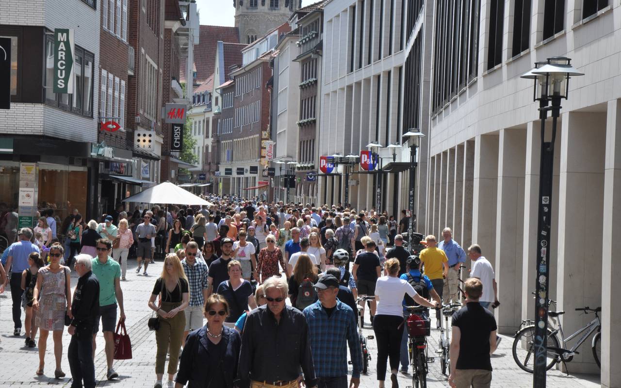In Münsters Innenstadt ist das normale Geschäftsleben nahezu zurückgekehrt. Das hat die Passanten-Zählung der Wirtschaftsförderung in Ludgeri-Straße und an der Rothenburg ergeben.