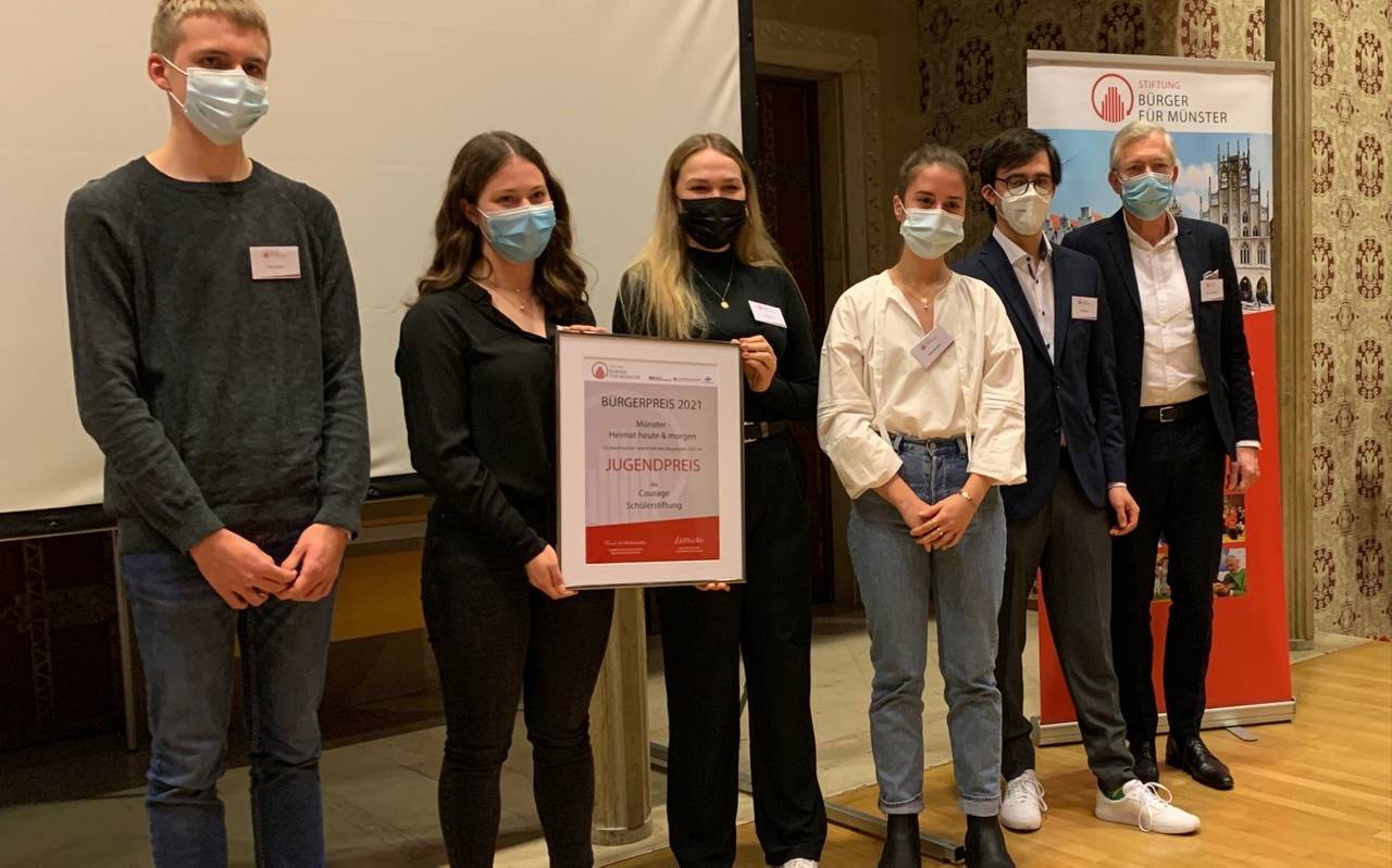 Der diesjährige Jugendpreis ging an die Courage Schülerstiftung am Geschwister Scholl-Gymnasium. Schülerinnen und Schüler übernehmen zum Beispiel Patenschaften für Grundschulkinder, die wegen ihrer Herkunft, Sprache oder finanziellen Situation benachteiligt sind.