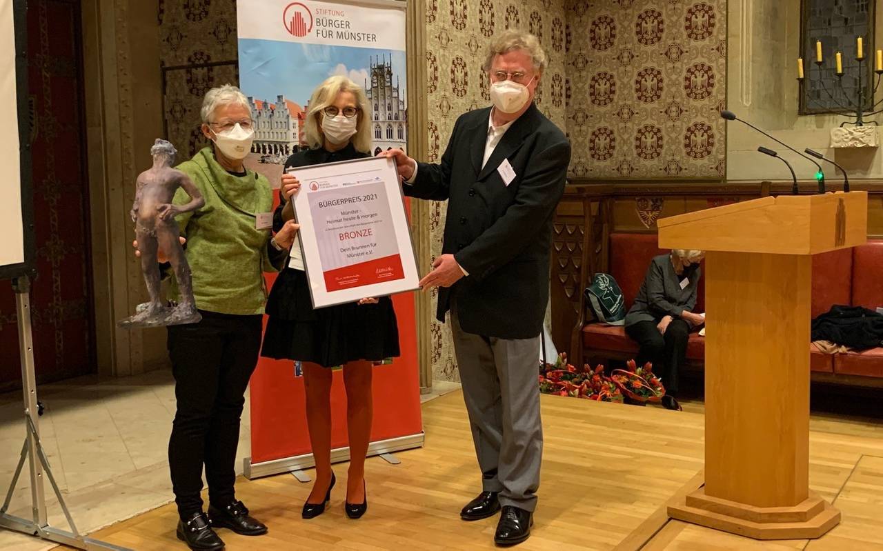 Den Bronzepreis (1.000 Euro) sicherte sich der Verein „Dein Brunnen für Münster“. Bürgerinnen und Bürger aus Münster und Umgebung haben es geschafft, ein hochkarätiges Kunstwerk der Skulptur-Projekte 2017 – den Brunnen „Sketch for a Fountain“ - dauerhaft nach Münster zu holen. Er ist an der Promenade (Kreuzschanze) zu sehen.