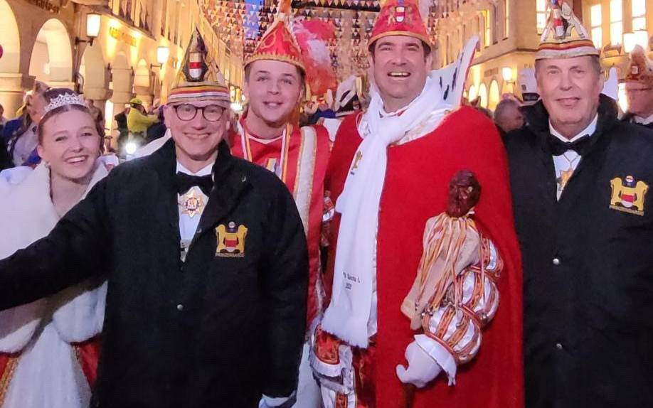 Ein "Einzug in die Residenz", wie es ihn in Köln schon lange gibt, hat jetzt auch bei uns in Münster Premiere gehabt. In Köln zieht das Dreigestirn immer kurz vor den "tollen Tagen" mit Pauken und Trompeten in sein Sessions-Hotel ein. Hier in Münster hat der Einzug am frühen Abend an der "prinzlichen Hofburg" Stuhlmacher auf dem Prinzipalmarkt begonnen. Von dort ging es zum Hotel Atlantic, wo Karnevalsprinz Sascha von Zabern arbeitet und lebt. Teilgenommen haben Abordnungen aller münsterschen Karnevalsgesellschaften und Spielmannszüge.