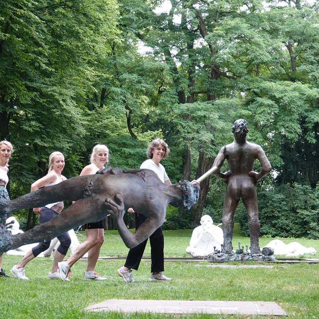 Der Brunnen soll dauerhaft am Orginalstandort Kreuzschanze aufgebaut werden. Der Brunnen mit den lebensgroßen Figuren hatte dort zu den Publikumslieblingen der Skulptur Projekte 2017 gehört.