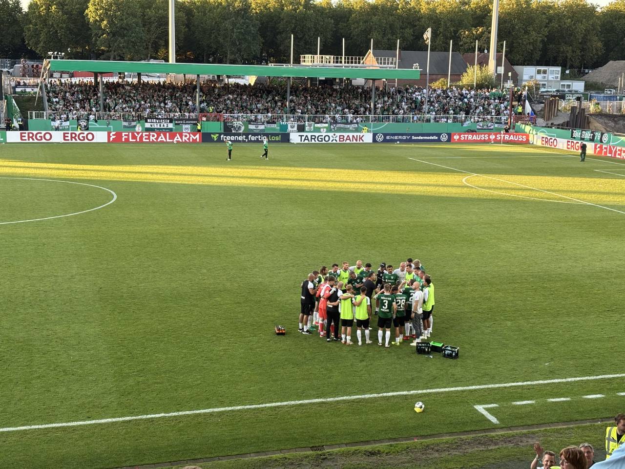 In der Verlängerung haben die Fans dann nochmal alles gegeben: "Vorwärts SC Preußen Münster hey!" Der Sieg sollte endlich her. Aber die Hertha Fans ließen sich nicht einschüchtern. "Oh Hertha BSC" schallte es minutenlang durchs gesamte Stadion. Immer wieder Torschüsse auf beiden Seiten aber kein Treffer dabei. Es ging ins Elfmeterschießen.