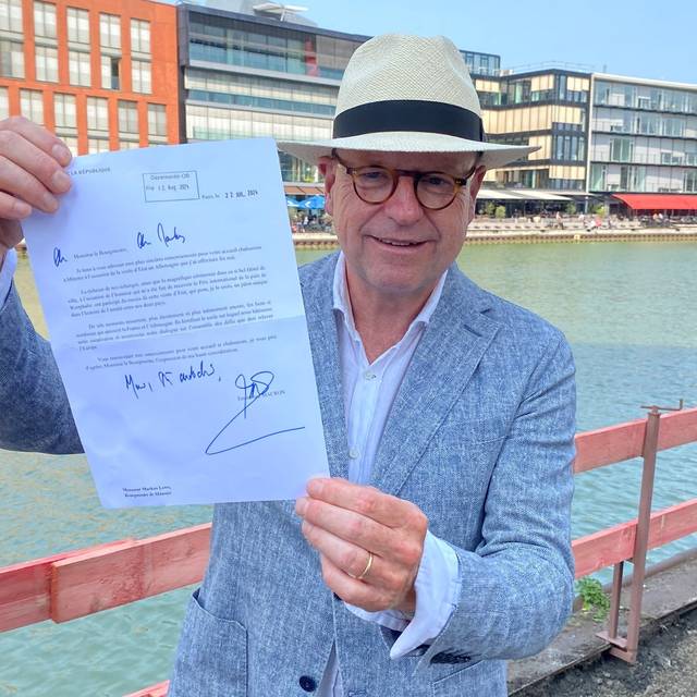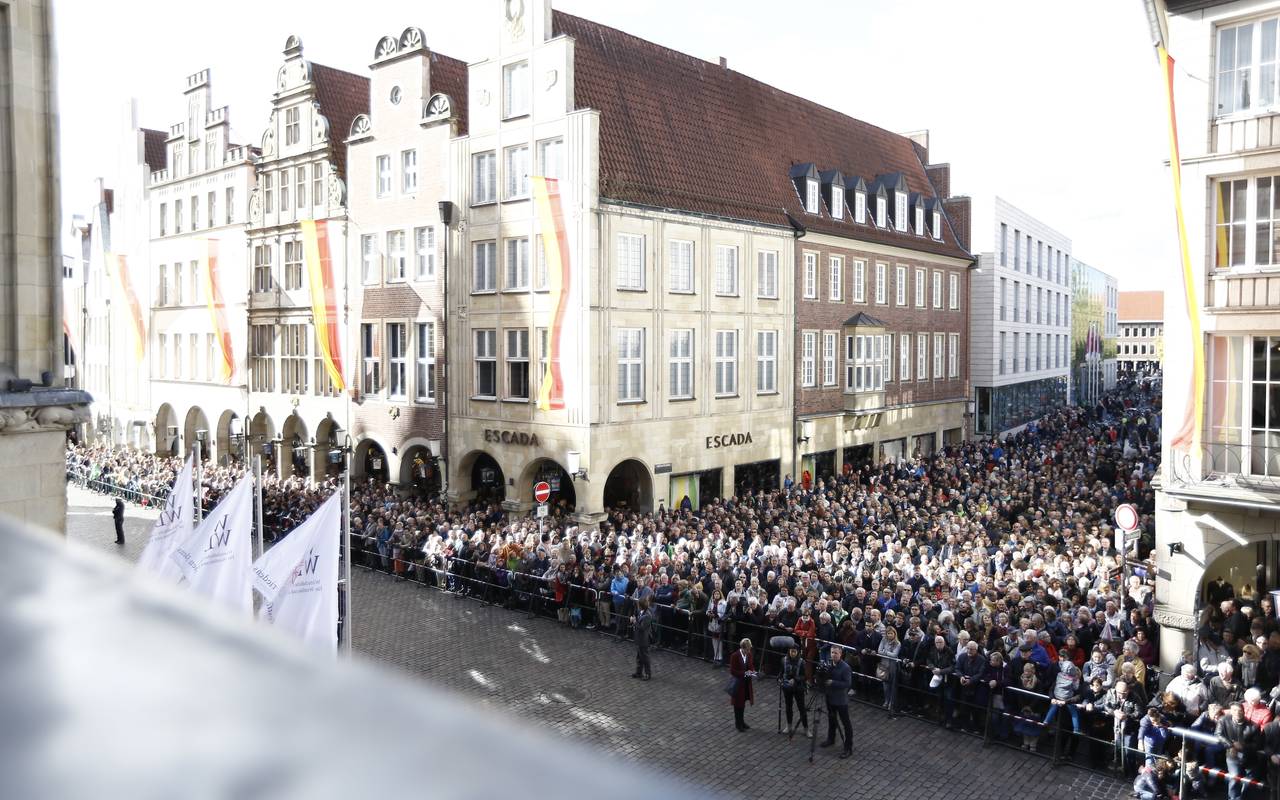 Die Reden sind gehalten, der Applaus ist verklungen und auf dem Sentenzbogen strahlten Staatsgast und Gastgeber mit der westfälischen Sonne über dem Rathaus um die Wette. Macrons Rede war ein Plädoyer für eine gemeinsame europäische Sicherheitspolitik, eine gemeinsame europäische Verteidigung und auch ein gemeinsames Handeln bei der inneren Sicherheit. Und: für mehr Optimismus und Tatendrang in Europa. "Ich glaube, wir müssen optimistischer sein", sagte Macron. Den in Münster geschlossenen Westfälischen Frieden bezeichnete er als Wurzel des gemeinsamen Europas. Die Beziehungen zwischen Deutschland und Frankreich seien lange Zeit von gegenseitiger Faszination und Feindseligkeiten geprägt gewesen, übergeblieben sei am Ende nur die Faszination. "Diese gegenseitige Faszination ist eine Quelle der Hoffnung", sagte Macron: "Ich habe eine ehrliche Liebe zu Deutschland".