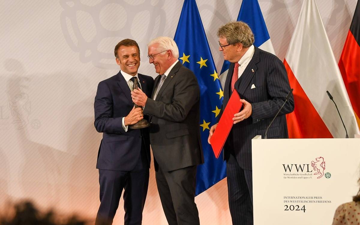Der französische Präsident Emmanuel Macron hat am Dienstag (28.05.) den Westfälischen Friedenspreis verliehen bekommen.