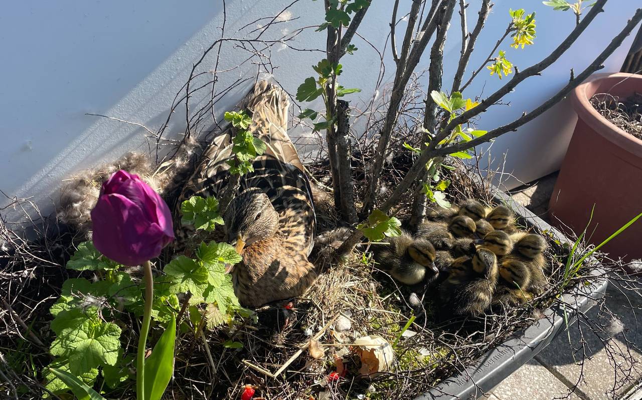 Vor einer Woche haben wir schon einmal von dem tierisch süßen Ereignis berichtet, das sich gerade auf dem Balkon von ANTENNE MÜNSTER-Hörerin Barbara abspielt. Der Balkon scheint es einer Stockente besonders angetan zu haben. Bereits im dritten Jahr in Folge brütet "Susie", wie Barbara das Tier getauft hat, ihre Küken in Barbaras Blumenkübel aus. Mittlerweile sind Barbara und ihr Freund zu richtigen Entenexperten geworden: Unter anderem haben sie sich Tipps von Experten der Biologischen Station in den Rieselfeldern geben lassen.