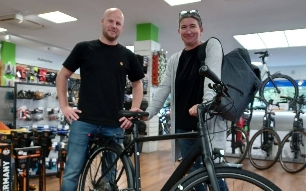 Bilder mit dem neuen Fahrrad werden natürlich sofort geknipst! Sowohl bei der Abholung mit Tochter Frieda, der Fahrt von Ninas Mann Andi und der Fahrt im Bus.
