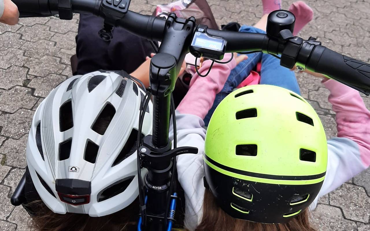 Am gemütlichsten ist die Aktion wohl für Silkes Tochter Amalia. Auch ohne Auto lässt sich Silke nicht davon abhalten, Fahrten für eine kleine Fahrgemeinschaft zu übernehmen und nimmt die Freundin ihrer Tochter kurzerhand im Fahrrad mit zum Schwimmen nach Roxel.