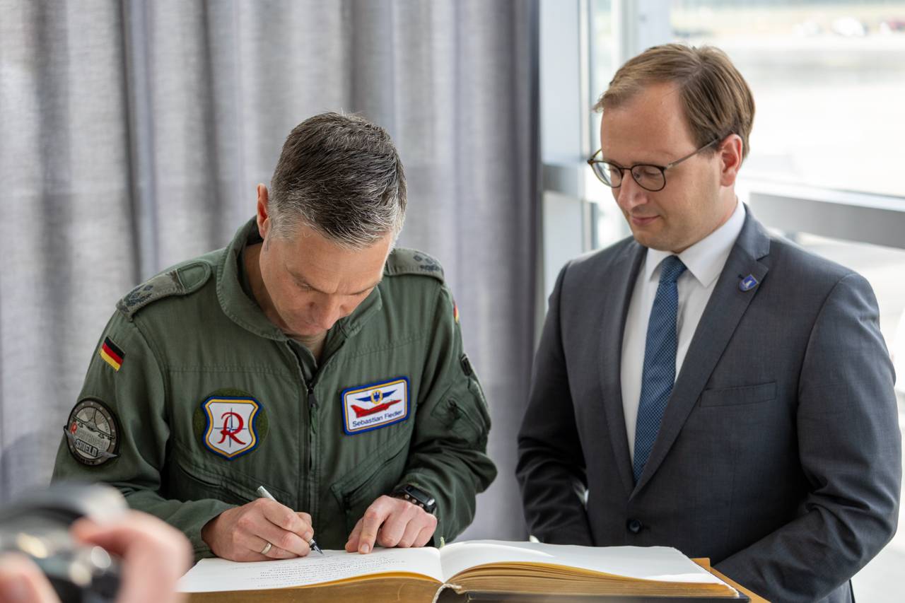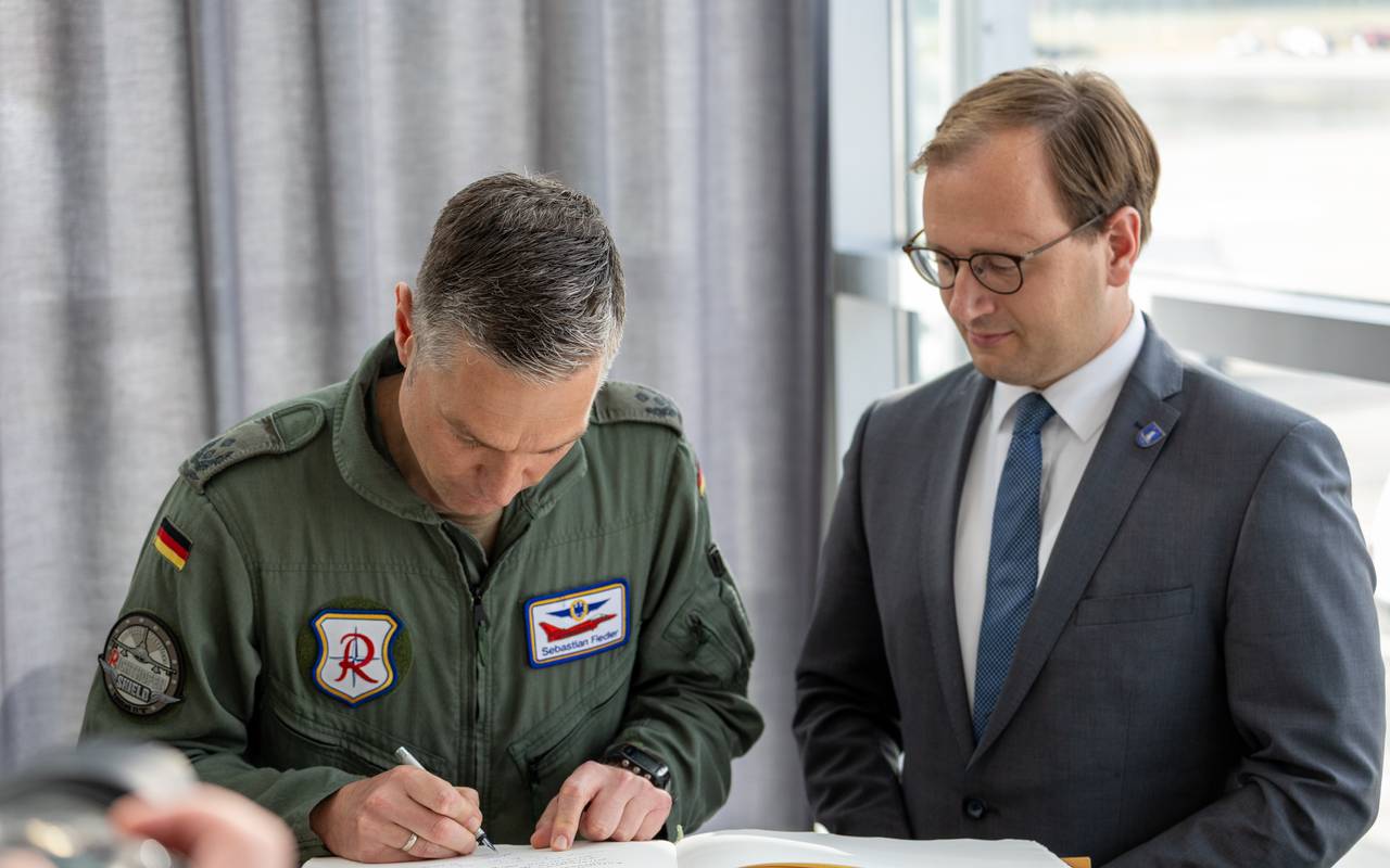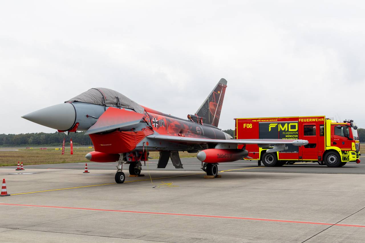"Die Luftwaffe trainiert Starts und Landungen mit bis zu vier Eurofightern. Die Soldatinnen und Soldaten greifen dabei auf die vorhandene zivile Flughafeninfrastruktur zurück und stimmen sich eng mit den Flughafenbetreibern ab", sagt Oberstleutnant Sebastian Fiedler, Kommodore des Taktischen Luftwaffengeschwaders "71 Richthofen". "Als logistischer Knotenpunkt für die NATO in Europa kann der FMO im Verteidigungsfall als strategisch wichtige Infrastruktur aktiv werden.