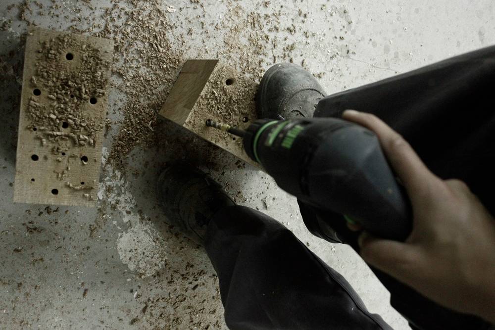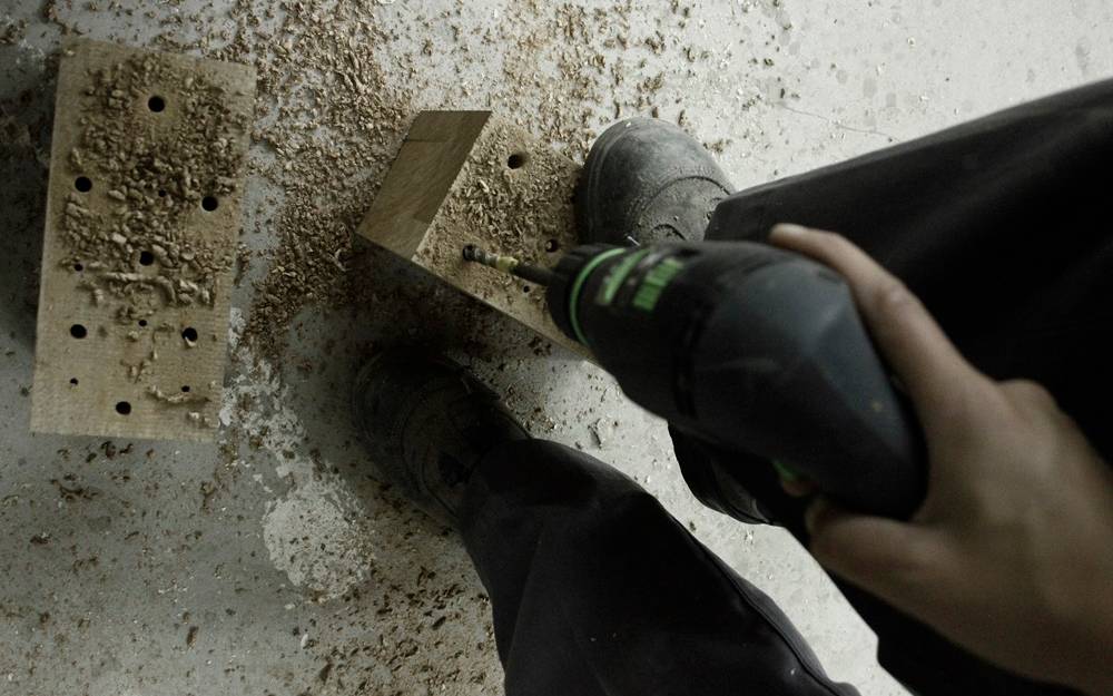 Mit einem Aufreiber senke ich alle Löcher, sodass der Schraubenkopf dort bündig mit der Fläche abschließen kann.
