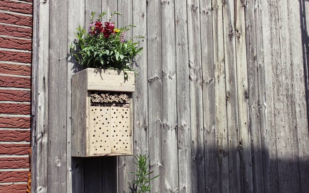 Wenn du auf der Dachterrasse des Hotels direkt Bienenblumen anpflanzen möchtest, befestige vorher z.B. eine Teichfolie in dem Kasten oder stelle einen geschlossenen Blumentopf hinein. So dringt das Wasser beim Gießen nicht in das Holz ein.