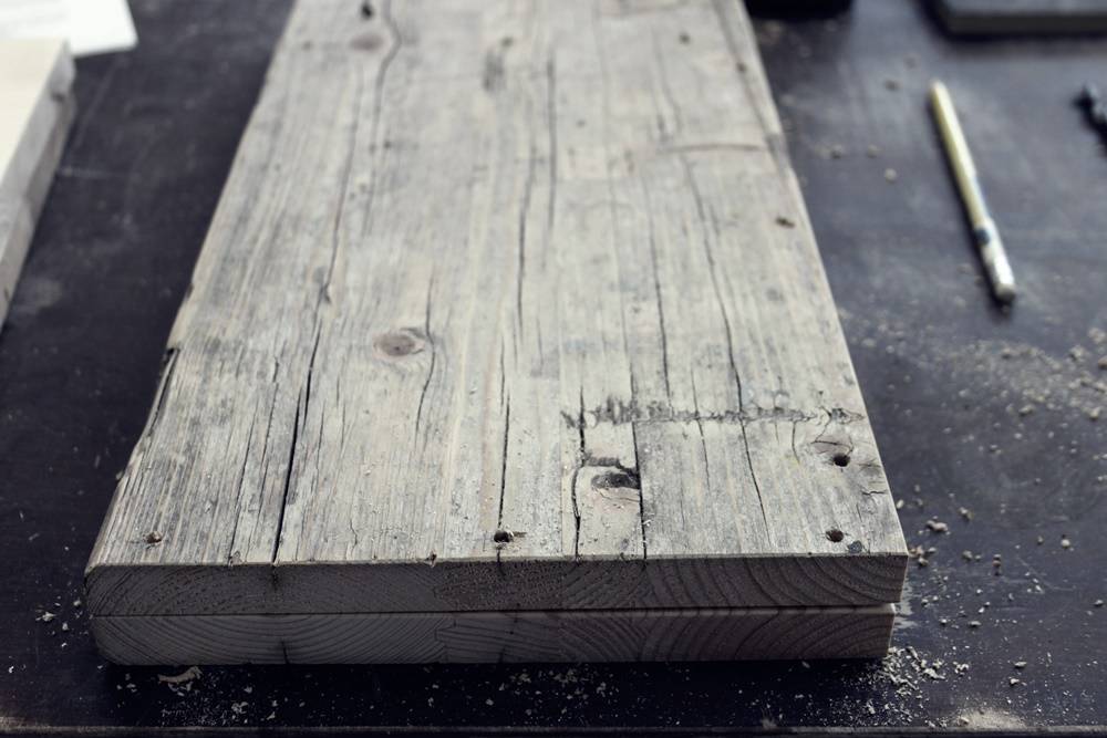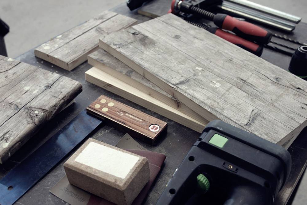 Holz, 18 mm Dicke (ich verwende Bauholz der Tischlerei Charakterstück, du kannst aber auch z.B. Kiefer-Leimholzbretter im Baumarkt kaufen)